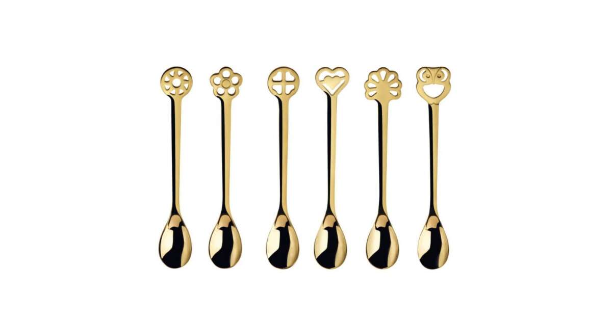 Ezt a terméket így is ismerheted: 6 db-os Casa Bugatti kávéskanál készlet, Portafortuna, 24k aranyozott, bemutató doboz, prémium anyag, fényes felület, rozsdamentes acél, arany