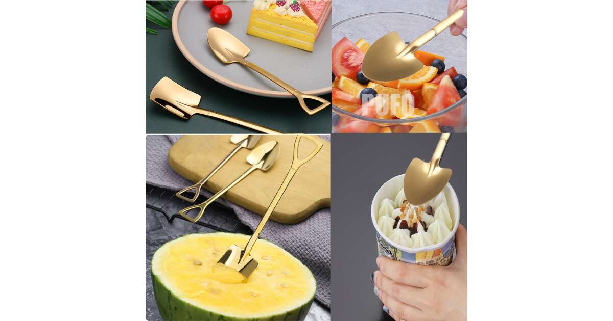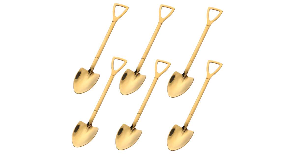 - 🥄 6 db arany színű lapát kanál egy készletben