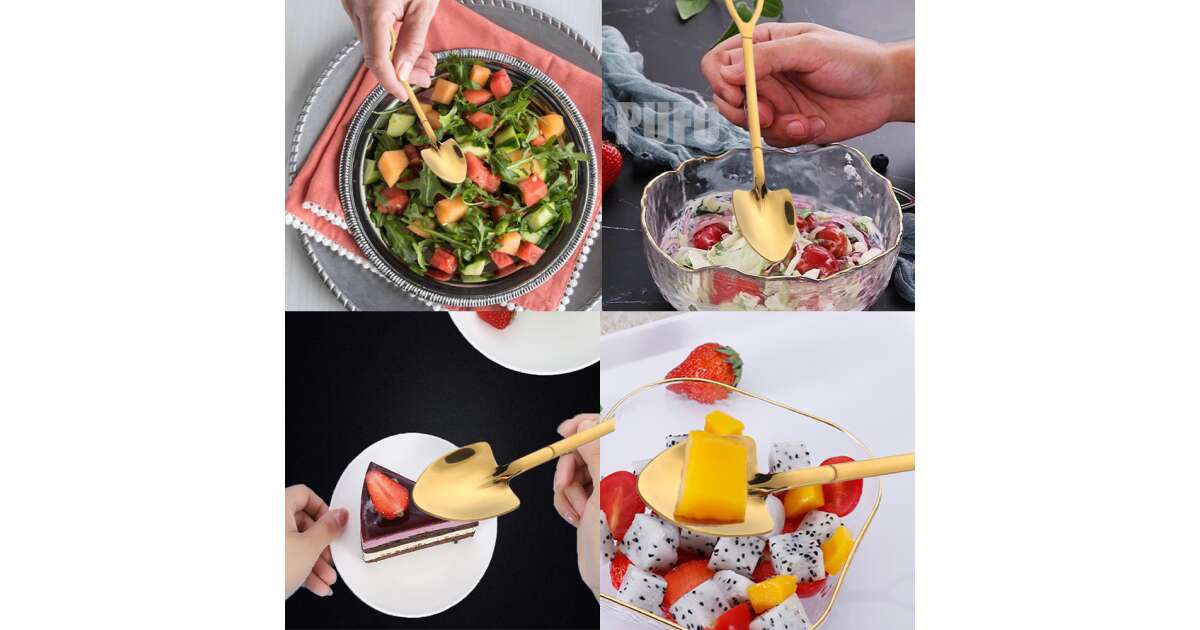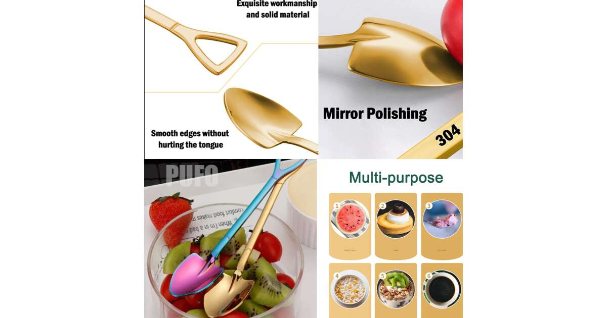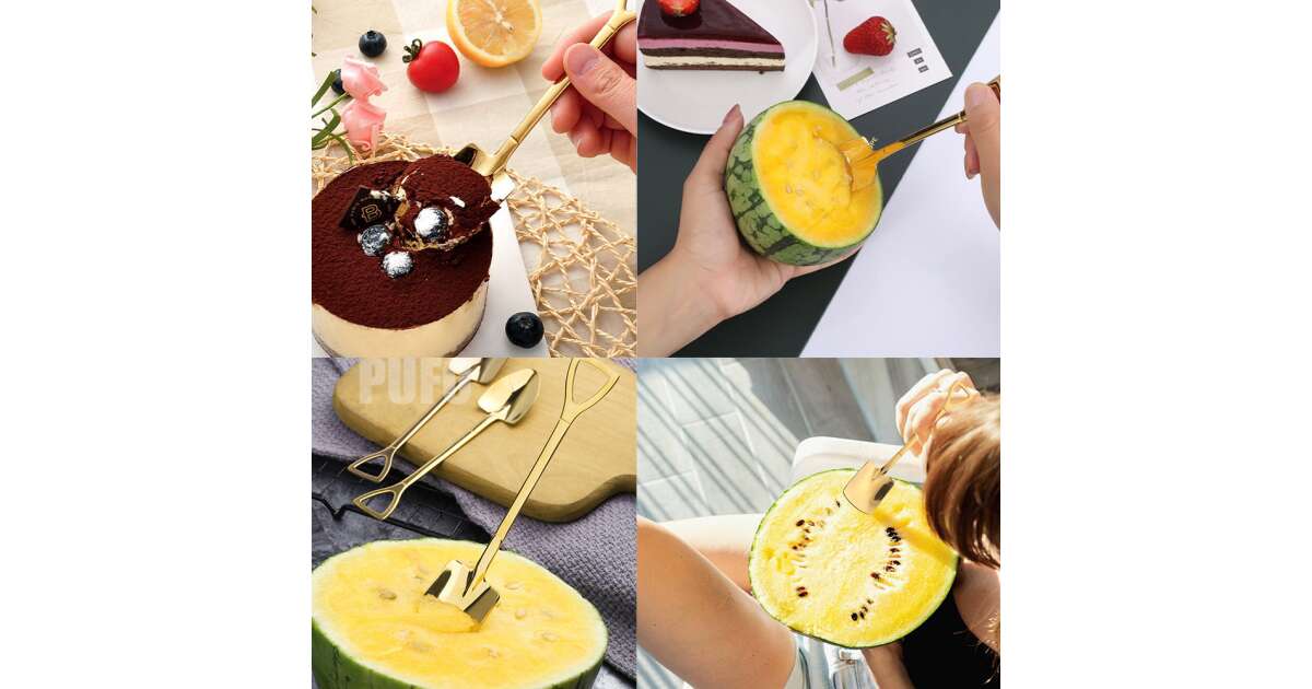 A Pufo lapát kanalak nem csak praktikusak, de szemkápráztatóan elegánsak is. A tökéletesen sima felület és a fényes arany szín luxus érzetet kölcsönöz az étkezésnek. A lapát alak megkönnyíti a desszertek, gyümölcsök és egyéb finomságok felszolgálását. Kiváló választás mindennapi használatra, de különleges alkalmakra is, például születésnapokra, ünnepekre vagy akár esküvőkre.