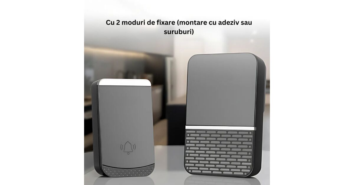 Macvi® vezeték nélküli ajtócsengő, vezeték nélküli, 260 m hatótávolság, 4 hangerőfokozat, IP44 vízállóság, dupla rögzítés, fekete színű Product Description: Adjon kényelmet és funkcionalitást otthonának a Macvi® vezeték nélküli kapucsengővel, amely egy modern, megbízható és könnyen telepíthető eszköz. Ez a nagy távolságokra tervezett és időjárásálló ajtócsengő ideális megoldás lakások, otthonok, irodák vagy kereskedelmi helyiségek számára. Működési tartomány 260 m - stabil és erős jel, ideális még nagy lakásokhoz is. 4 állítható hangerőszint - bármilyen igényhez igazítható, a diszkrét értesítéstől a hangos jelzésig. IP44 vízálló - tökéletes kültéri telepítéshez, bármilyen időjárási körülmények között. 2 rögzítési mód - szalagos vagy csavaros rögzítés a maximális stabilitás érdekében. Többszörös csatlakoztatás - lehetővé teszi több vevő vagy gomb csatlakoztatását a rugalmasság érdekében. Kompakt és stílusos kialakítás - a modern fekete szín bármilyen dekorációba illeszkedik. Specifikációk: Terméktípus: Csengő: Vezeték nélküli vezeték nélküli ajtócsengő Maximális működési távolság: 260 m Hangerő: 4 állítható szint Védelmi fok: Védelmi fokozat: A hangerőszabályozó és a hangszóró: IP44 (víz- és porálló) Rögzítési módok: ragasztószalag / csavarok Colour: Fekete/szürke