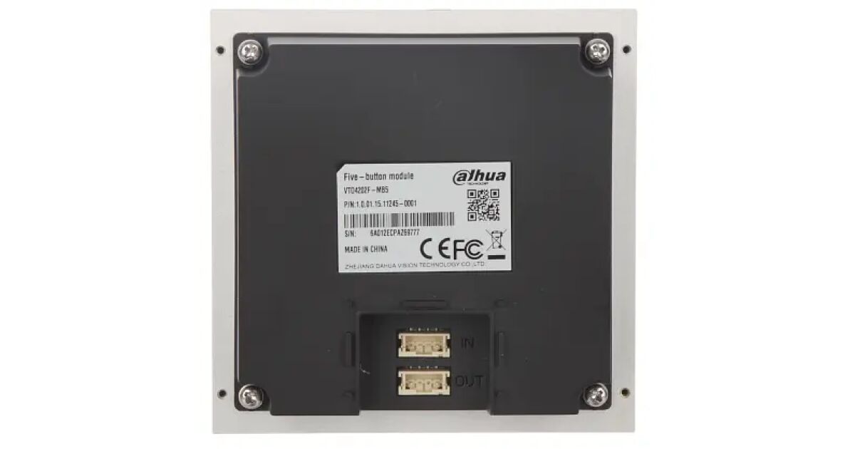 A Dahua VTO4202F-MB5 egy bővítő modul, amely a VTO4202F-P moduláris kültéri főegységhez használható. Segítségével 5 további hívógomb adható a rendszerhez, így ideális megoldás több lakásos épületekhez vagy irodákhoz.