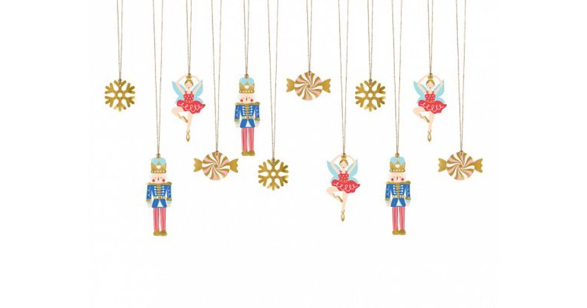 Varázsolj meghitt hangulatot otthonodba ezzel a bájos, 12 darabos karácsonyfadísz szettel! A szettben diótörő figurák, balerinák, hópelyhek és cukorka formájú díszek találhatók, melyek tökéletes kiegészítői lesznek a karácsonyfának vagy akár ajándékként is örömet szerezhetnek.