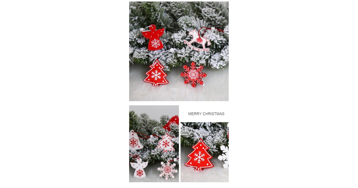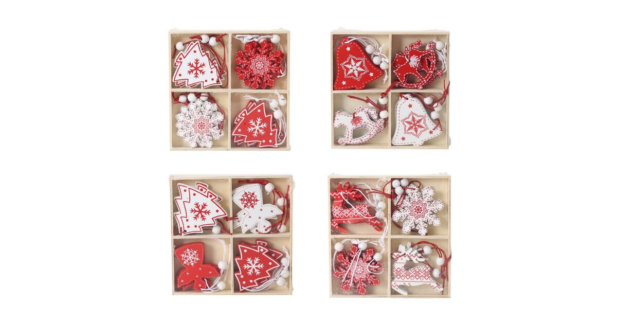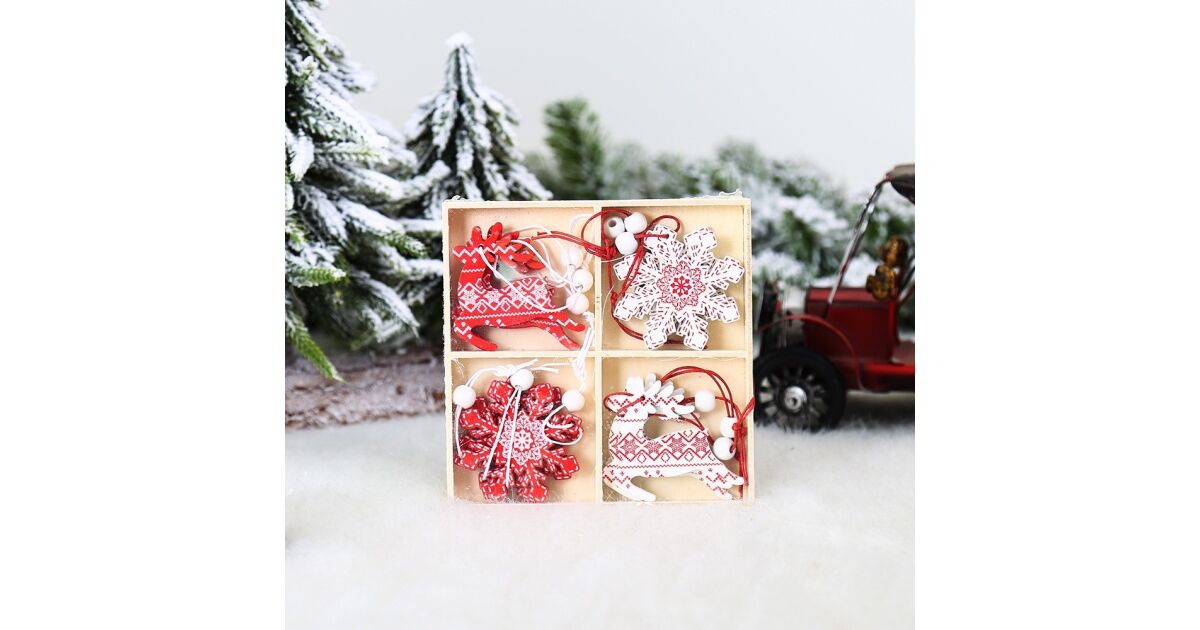 12 darabos fa karácsonyfadísz szett - Rénszarvasok és hópihék - Fehér-piros 🎄