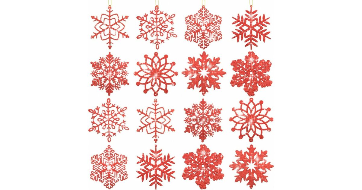 Fangoo 16 darabos, piros, csillogó hópehely szett: Varázslatos karácsonyi dekorációk ✨