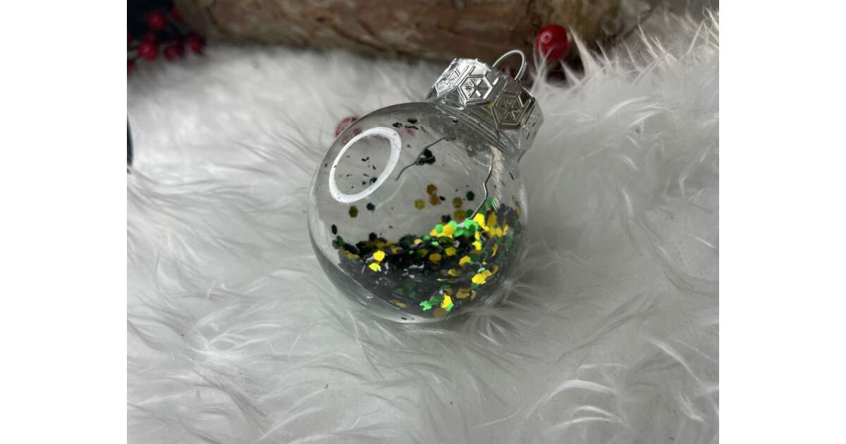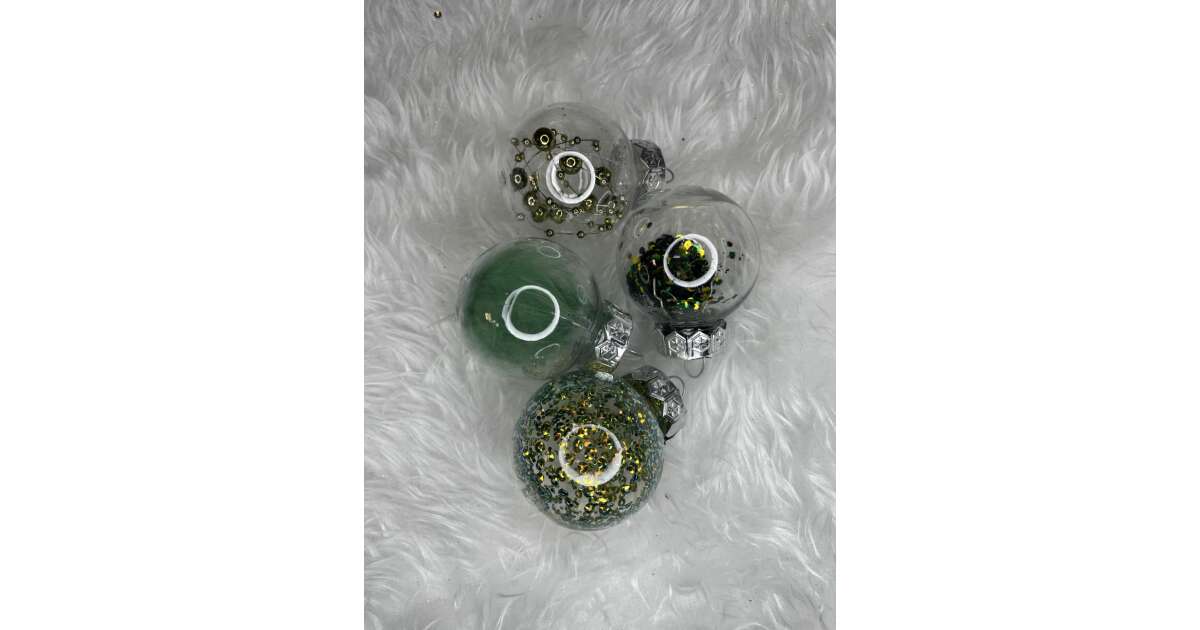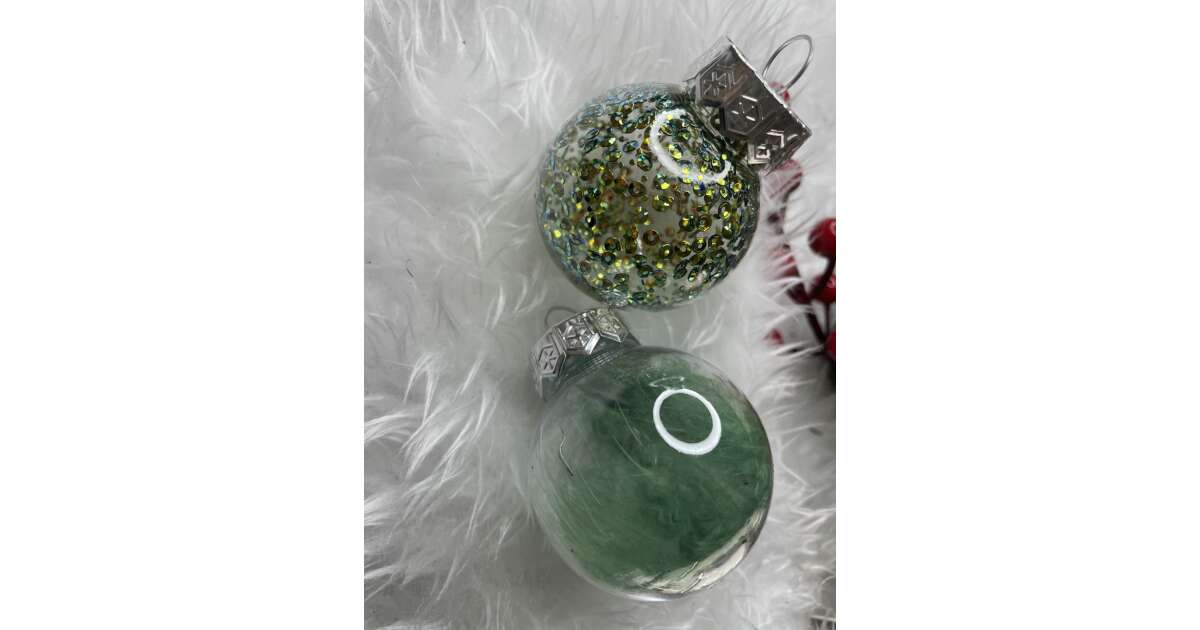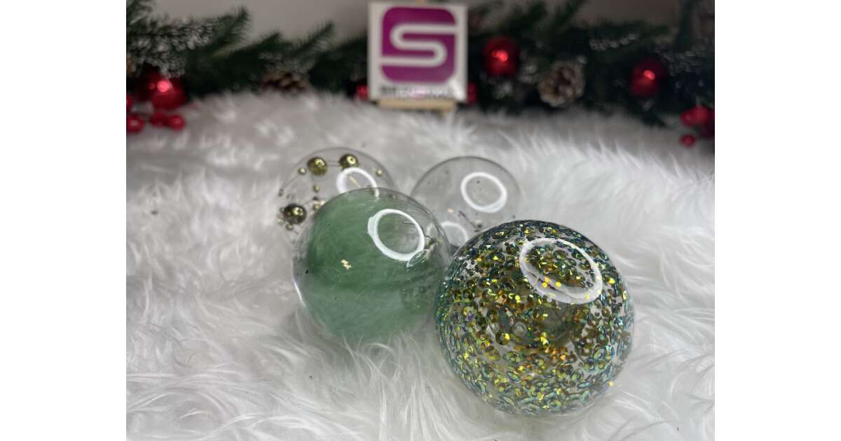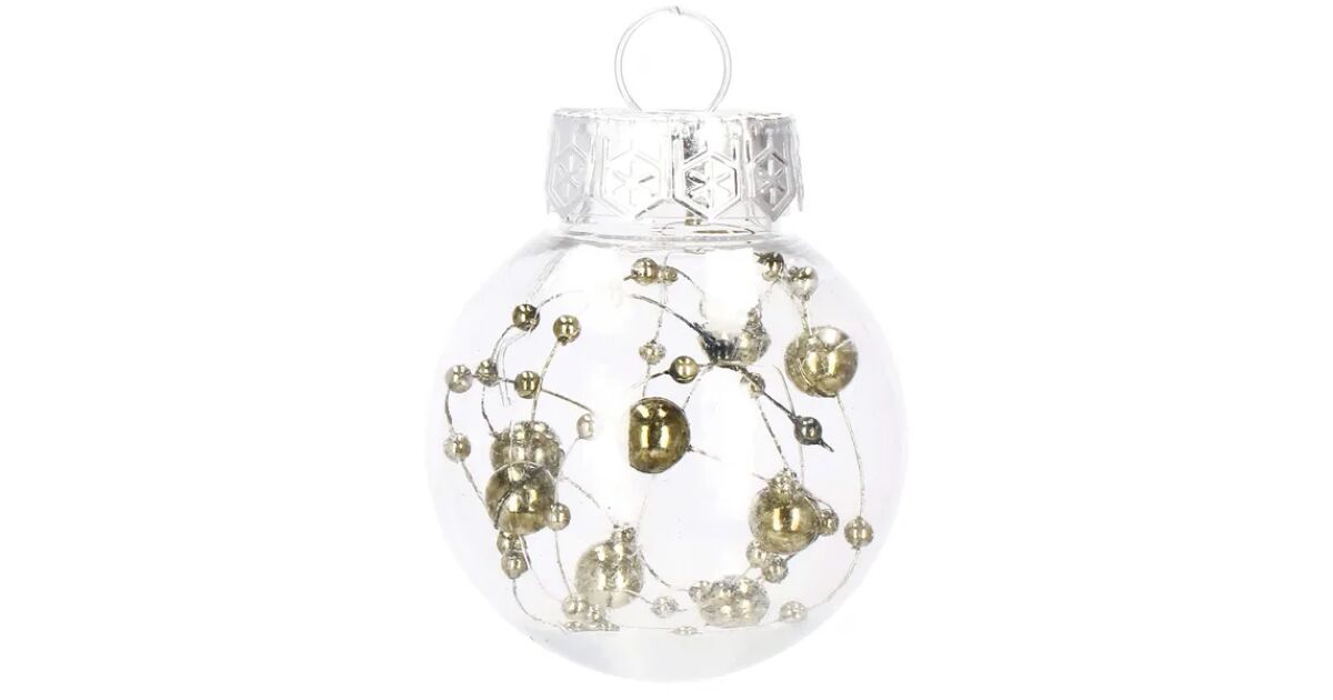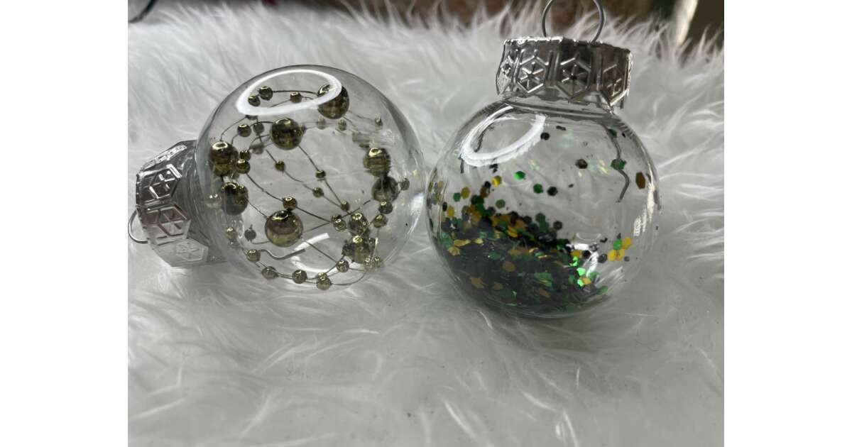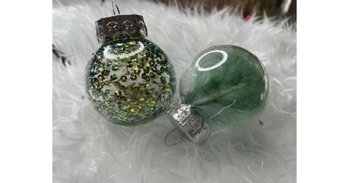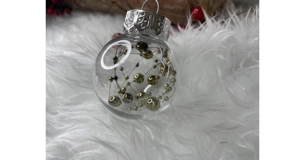 Ez a 24 darabos karácsonyfadísz készlet 5 cm-es, átlátszó gömbökből áll, melyek arany és zöld színűek, és különböző mintákkal vannak díszítve: toll, gyöngyök, flitterek és konfetti. A gömbök műanyagból készültek, így törhetetlenek, és biztonságosan használhatók akár gyermekes családokban is.