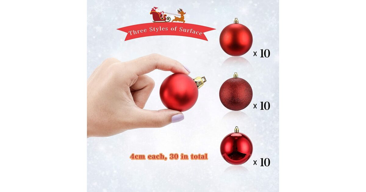 LessMo karácsonyfadísz szett - 30 darab, piros, 4 cm - Ünnepi dekorációk a fára ✨