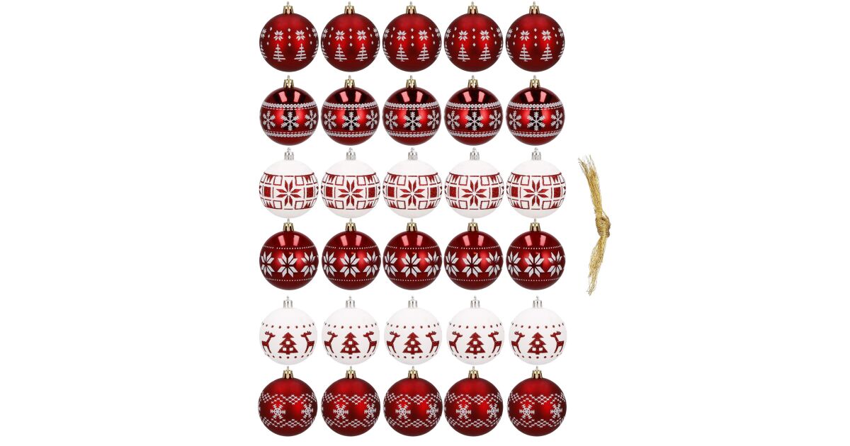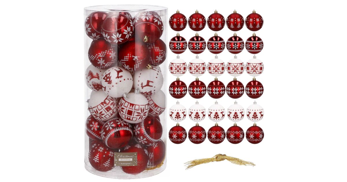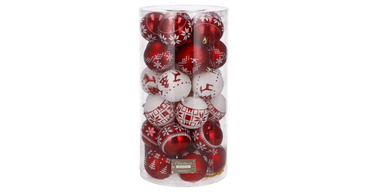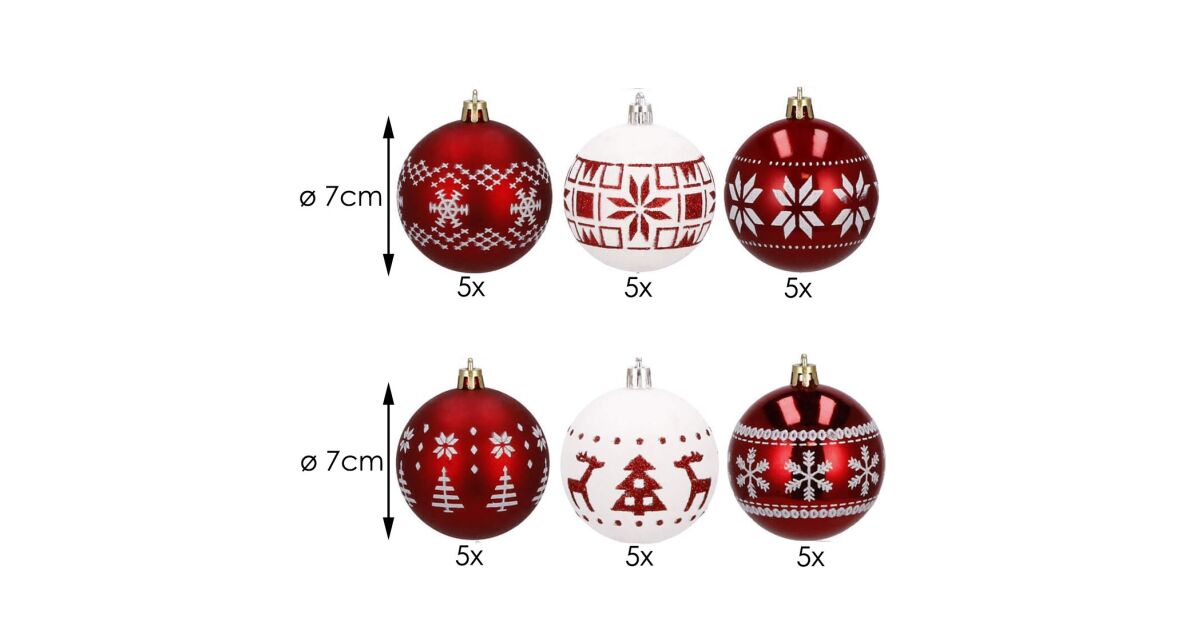 Karácsonyi gömbszett: 30 db piros-fehér ünnepi dísz 🎄