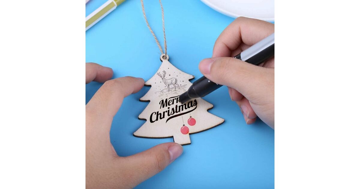 Karácsonyi fa díszek készlet - 50 db fa medál + kötél 🎄