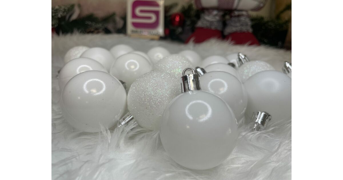 Springos Karácsonyfa gömbök 20 db - fehér leírása