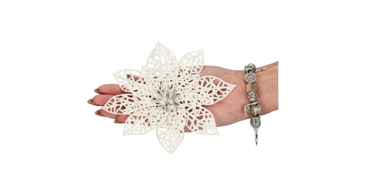 Dobja fel otthonát ezzel a gyönyörű, csillogó mikulásvirág dekorációval, mely tökéletes kiegészítője lehet karácsonyi dekorációjának. A fehér csillámok és a hó effekt varázslatos hangulatot teremtenek.