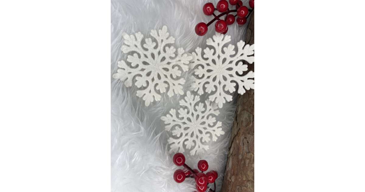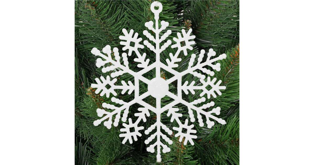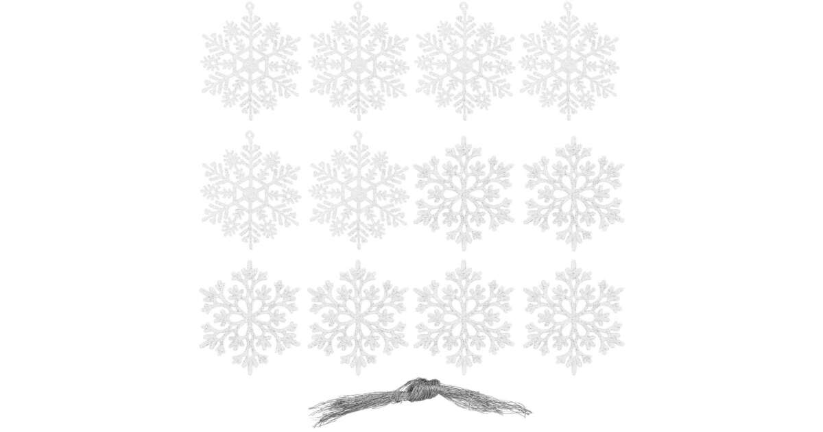 12 db csillogó fehér hópehely karácsonyfadísz ✨