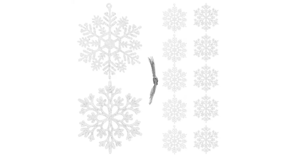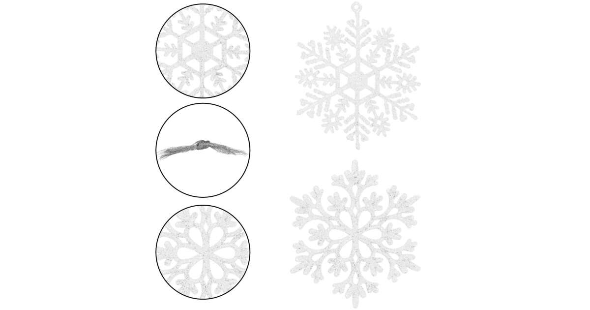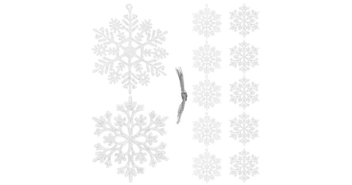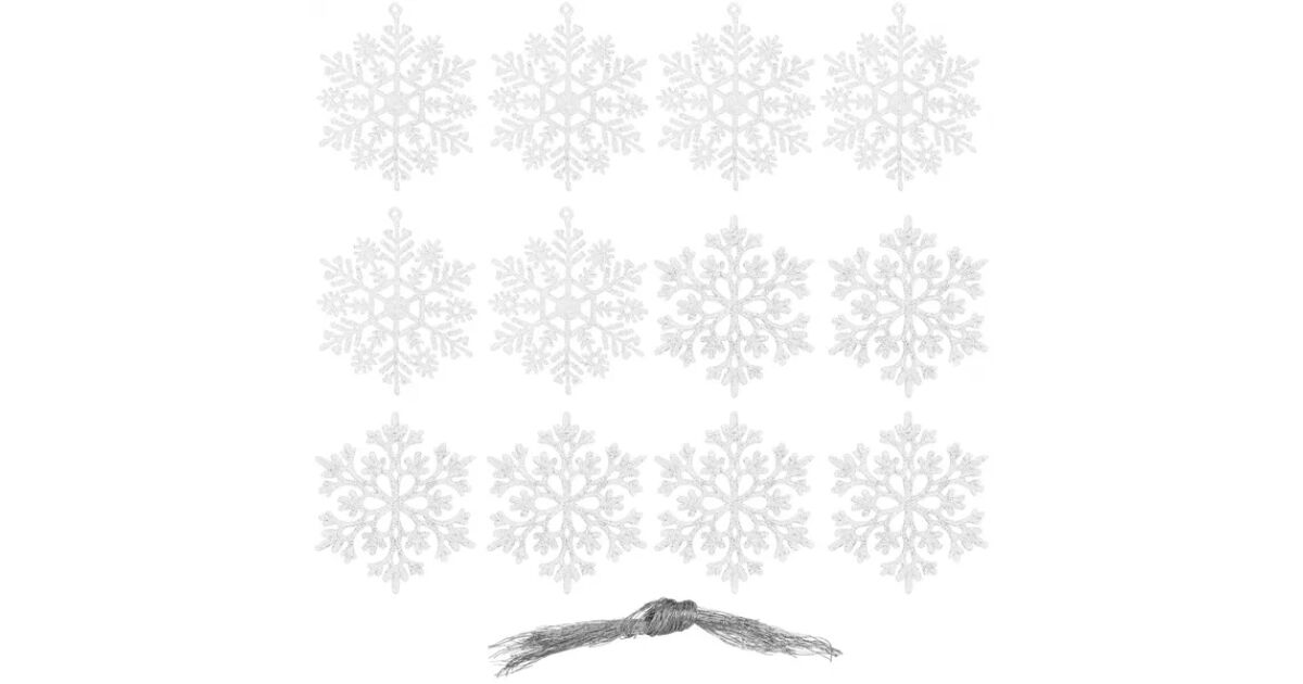 - A csomag tartalma: 12 db hópehely dísz és 1 db zsinór az akasztáshoz
