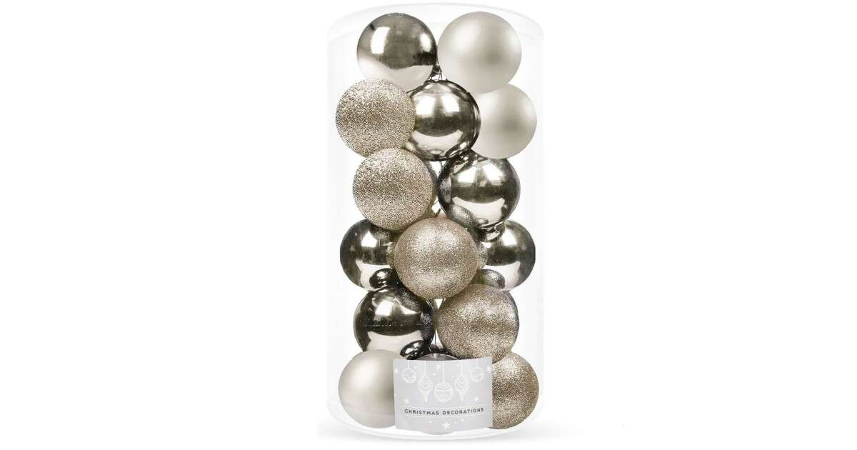Ezt a terméket így is ismerheted: Springos Karácsonyfa gömbök 20 db - pezsgő/ezüst