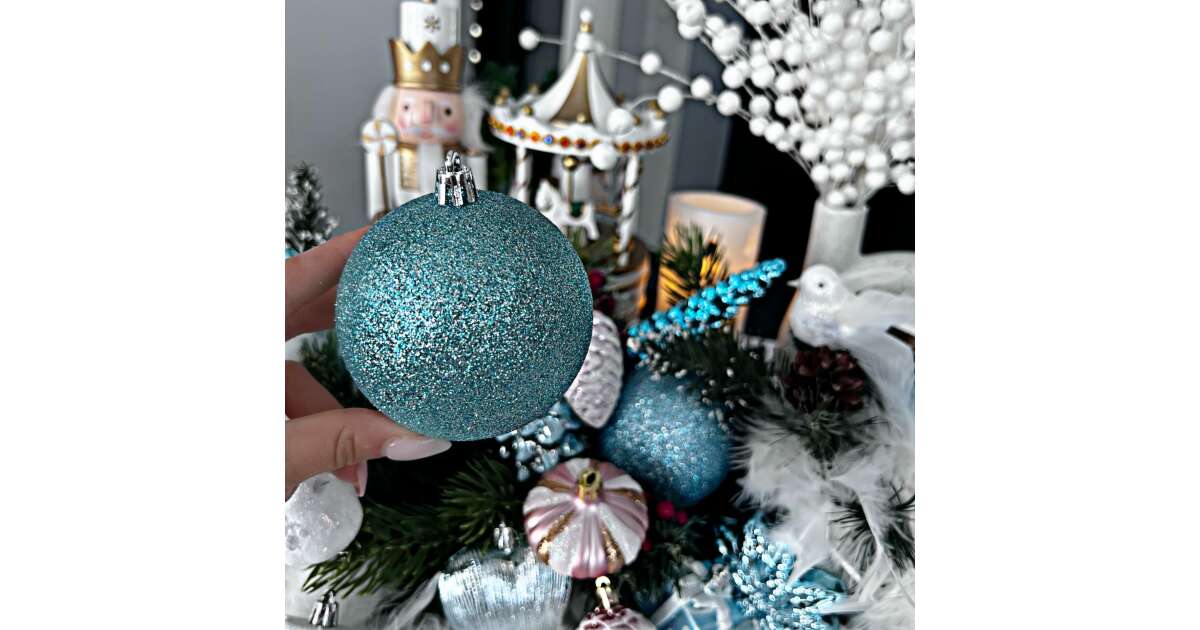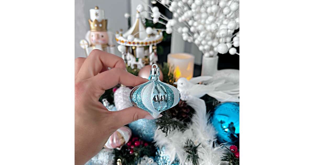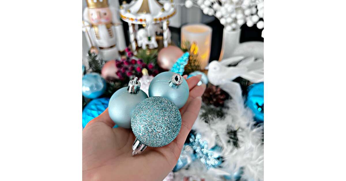 Springos Karácsonyfa gömbök 37 db - gyöngyház kék vélemények