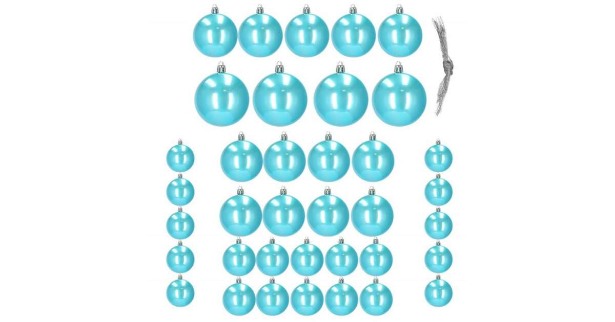 Díszítse fel karácsonyfáját ezzel a 37 darabos gyöngyház kék karácsonyfadísz készlettel! Különböző méretű gömbök biztosítják, hogy minden ízlésnek megfeleljen.