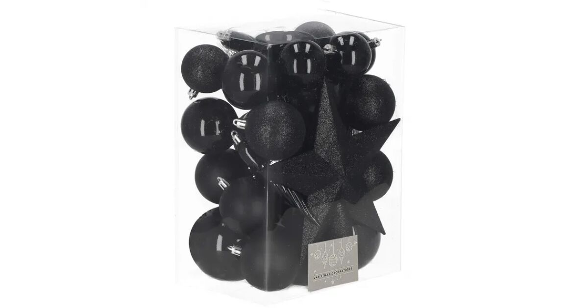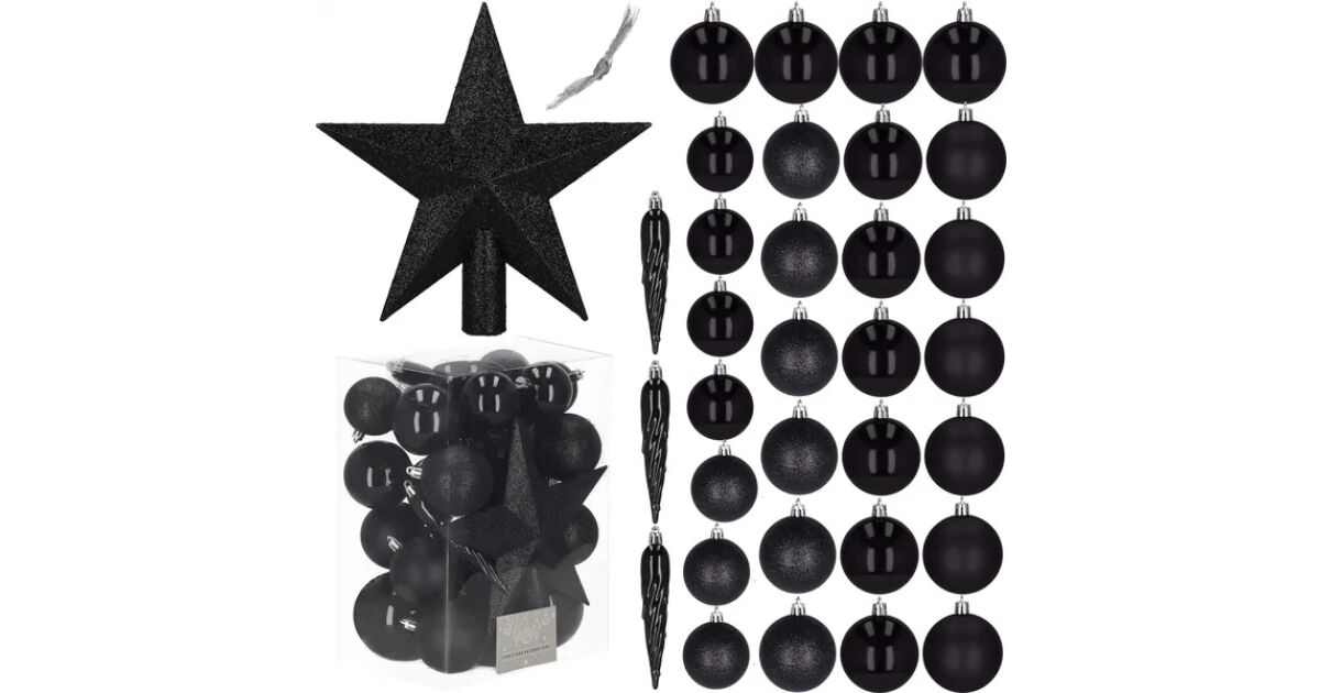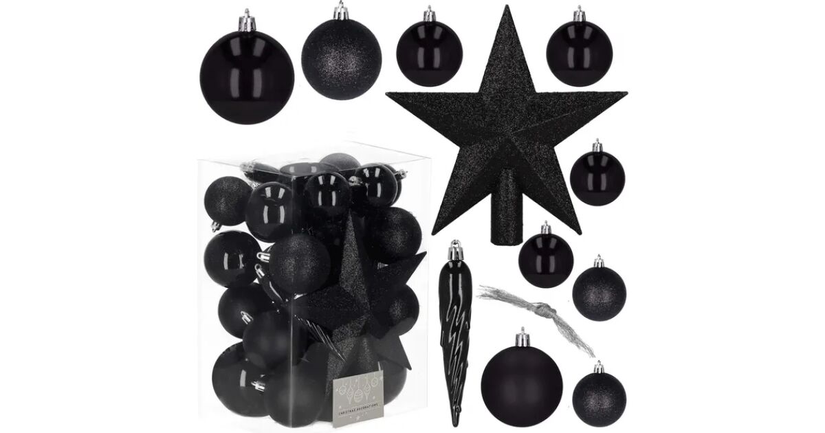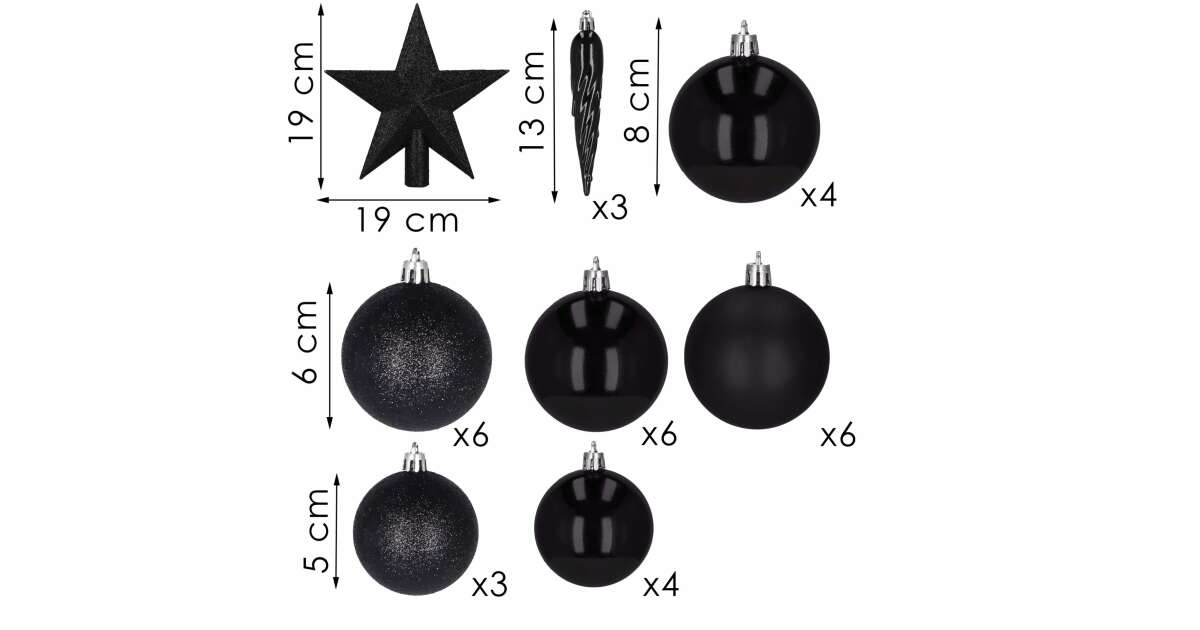 Springos Fekete Karácsonyfadísz Készlet: 33 db elegáns gömb, jégcsap és csillag ✨