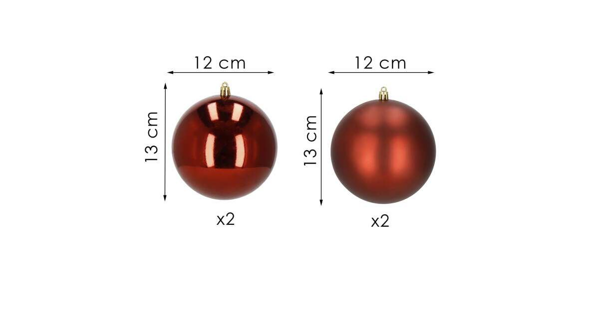 - Felület: 2 matt és 2 fényes gömböt tartalmaz a szett, így változatos megjelenést biztosít.