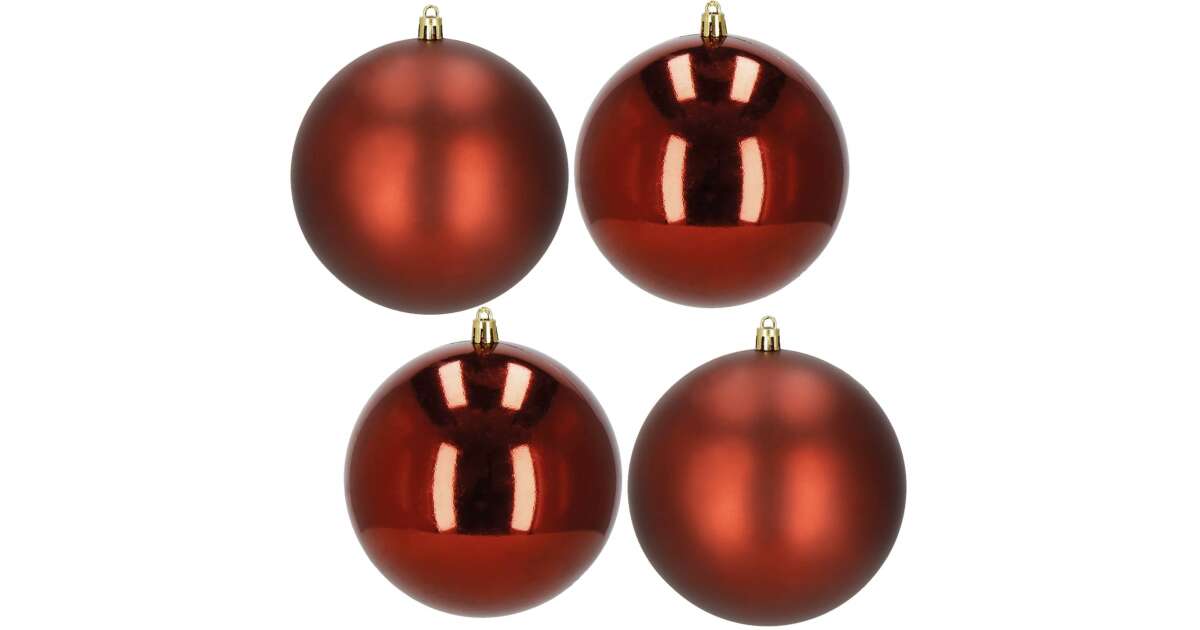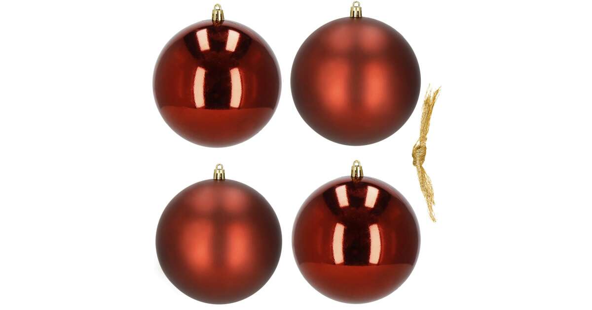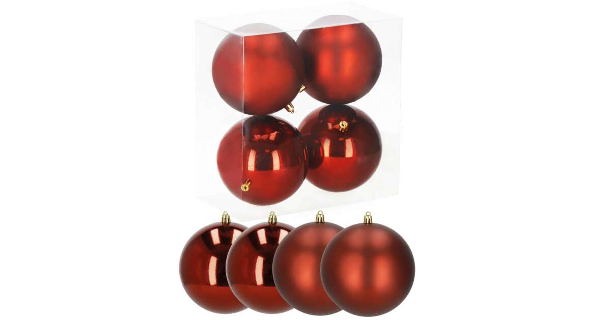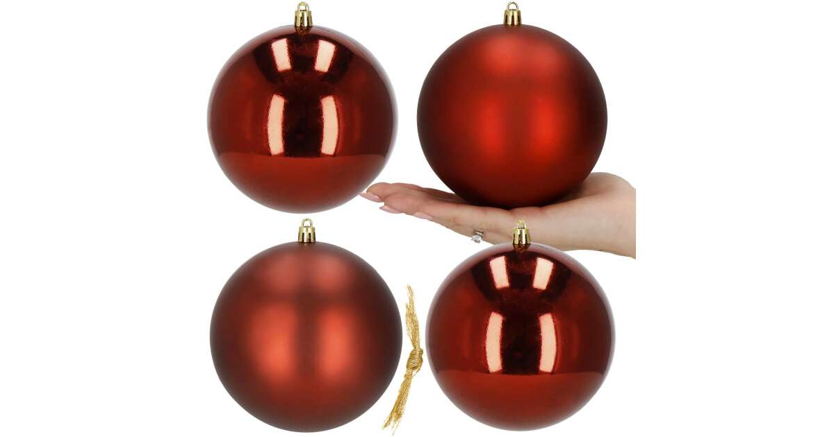 Springos Karácsonyfadísz gömbök: 12 cm-es, piros, matt és fényes karácsonyi gömbök 4 db-os szettben ✨