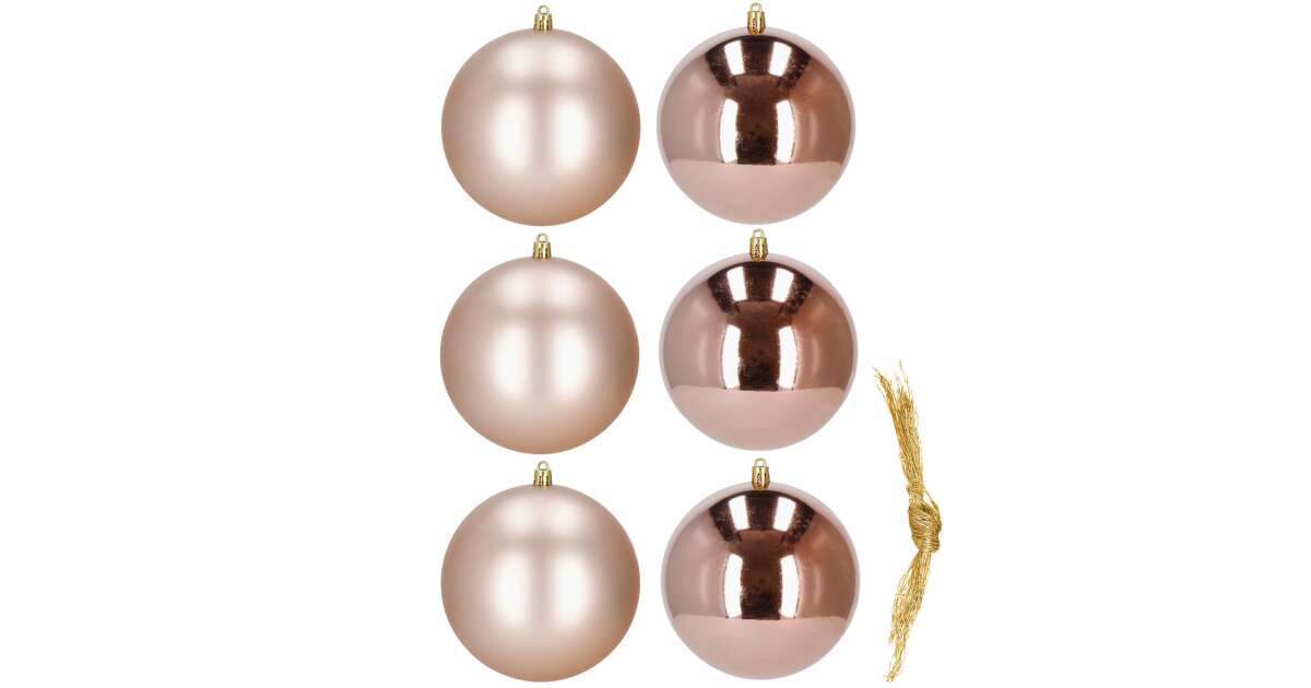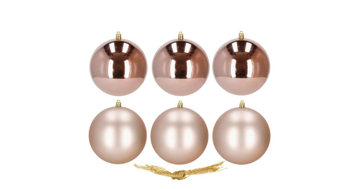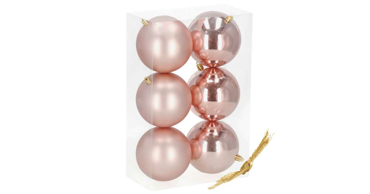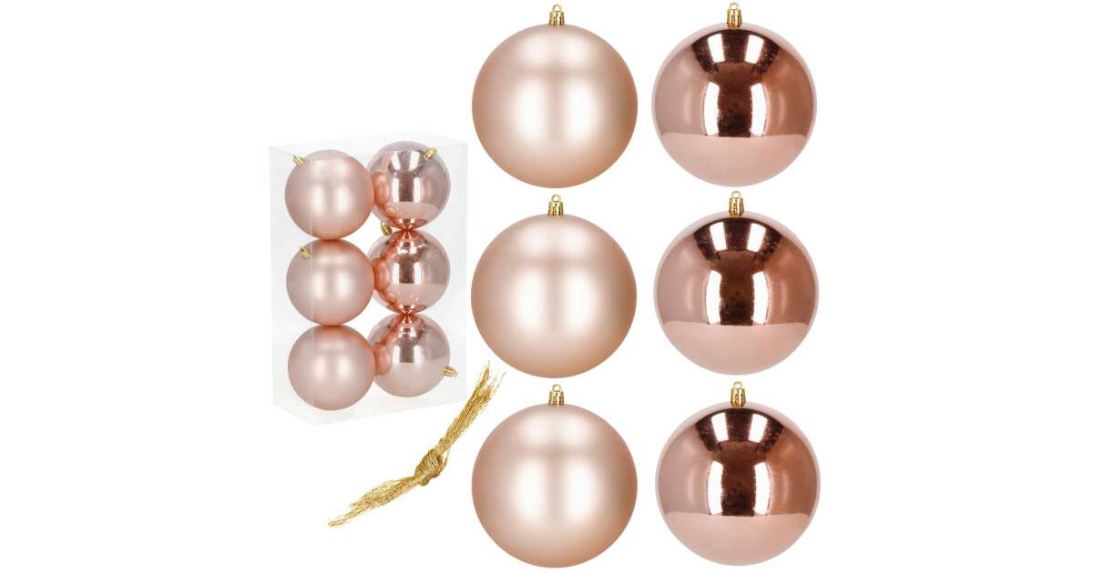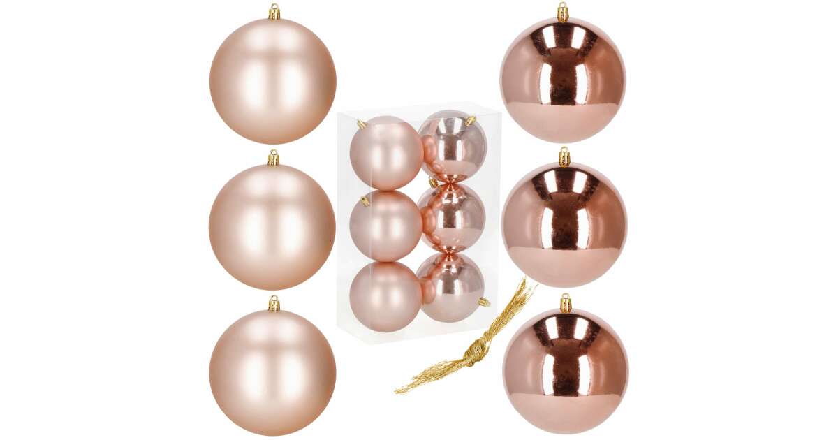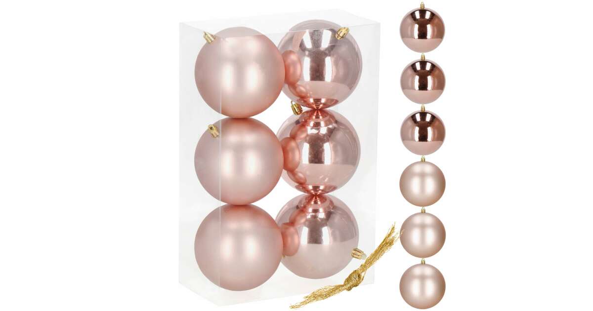 6 db 10 cm-es rózsaarany karácsonyfadísz - Matt és fényes gömbök ✨