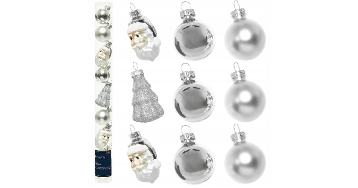 Ezt a terméket így is ismerheted: Ezüst karácsonyfadíszek csőben, 9 db-os készlet, 6 cm