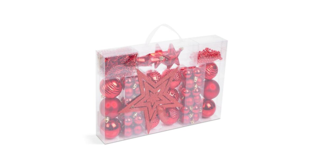 Ezt a terméket így is ismerheted: Karácsonyi Díszszett - 66 db Piros Gömb, Csillag, Füzérek