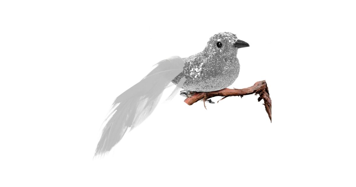 Ezüst színű, csillogó glitteres madár karácsonyi dísz, melyet csipesz segítségével könnyedén felakaszthatsz a karácsonyfára vagy más dekorációra. A madár finom, fehér tollú farkával igazán elegáns kiegészítője lesz az ünnepi dekorációnak.