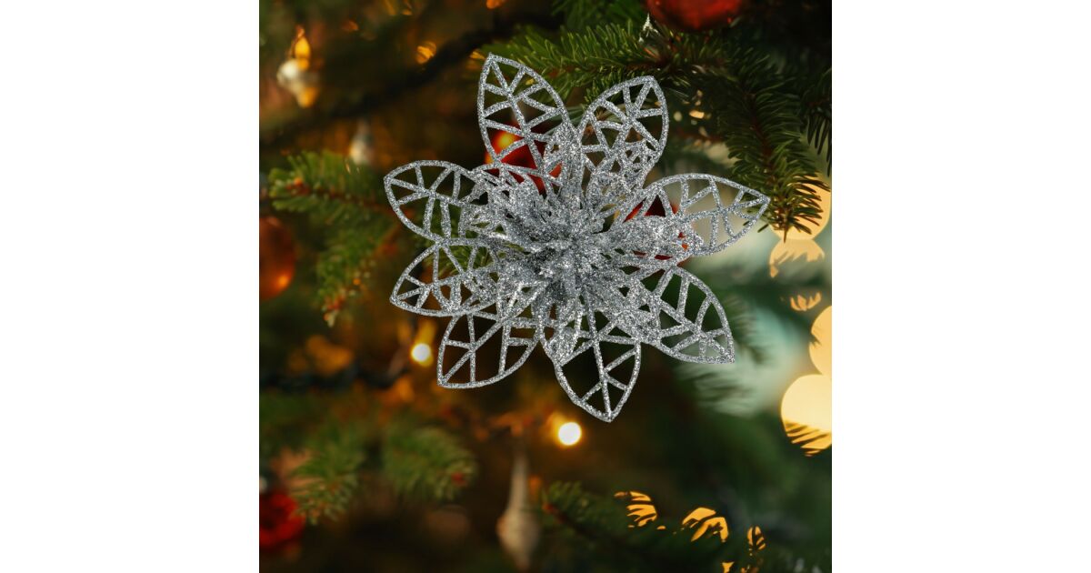 Csillogó ezüst karácsonyi virágdekoráció - 3 db-os csomag ✨
