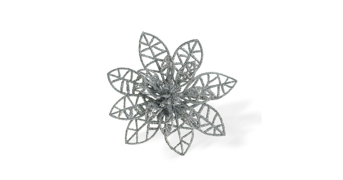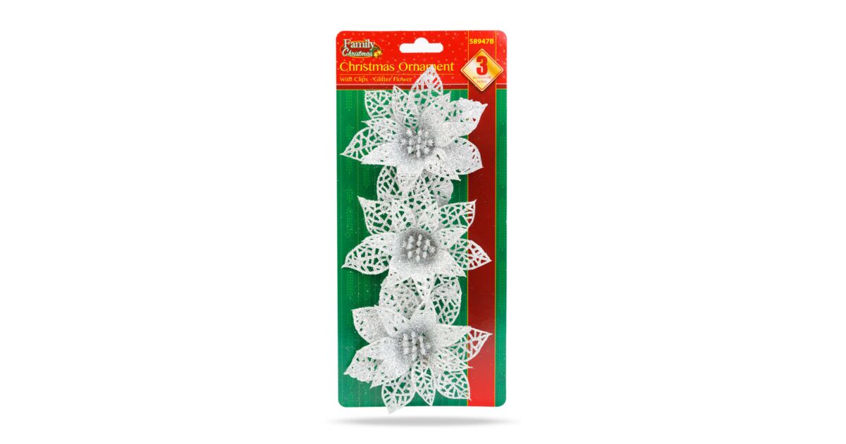-Karácsonyi dísz - csipeszes - glitteres virág - ezüst - 3 db / csomag leírása