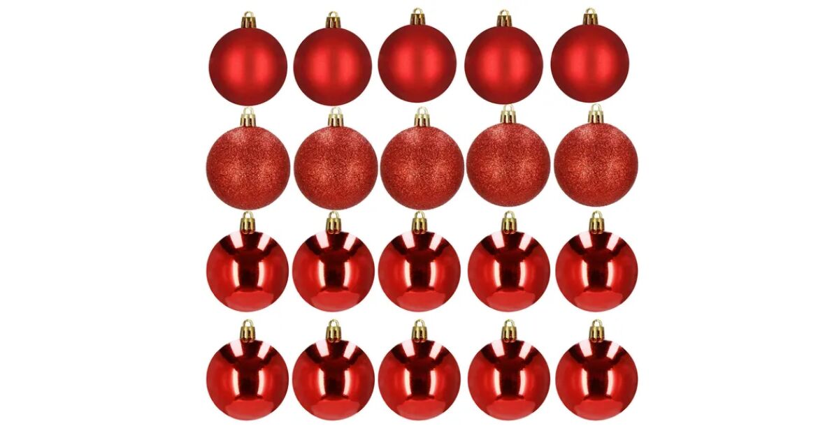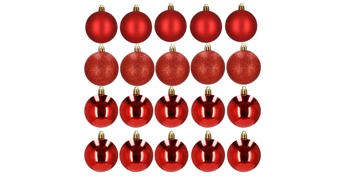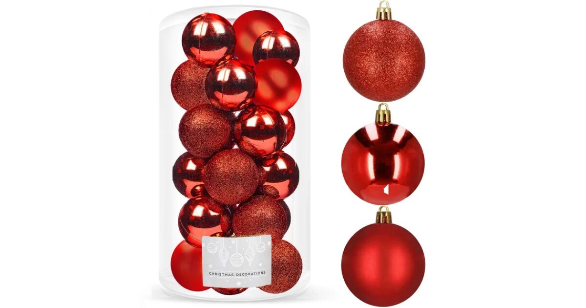 Ez a 20 darabos piros karácsonyfadísz készlet tökéletes választás az ünnepi hangulat megteremtéséhez. Különböző felületkezelésű gömbökből áll (matt, csillámos, fényes), így változatos megjelenést biztosít karácsonyfádnak. A gömbök 4 cm átmérőjűek, és törhetetlen műanyagból készültek, így biztonságosan használhatók akár gyermekes családokban is.