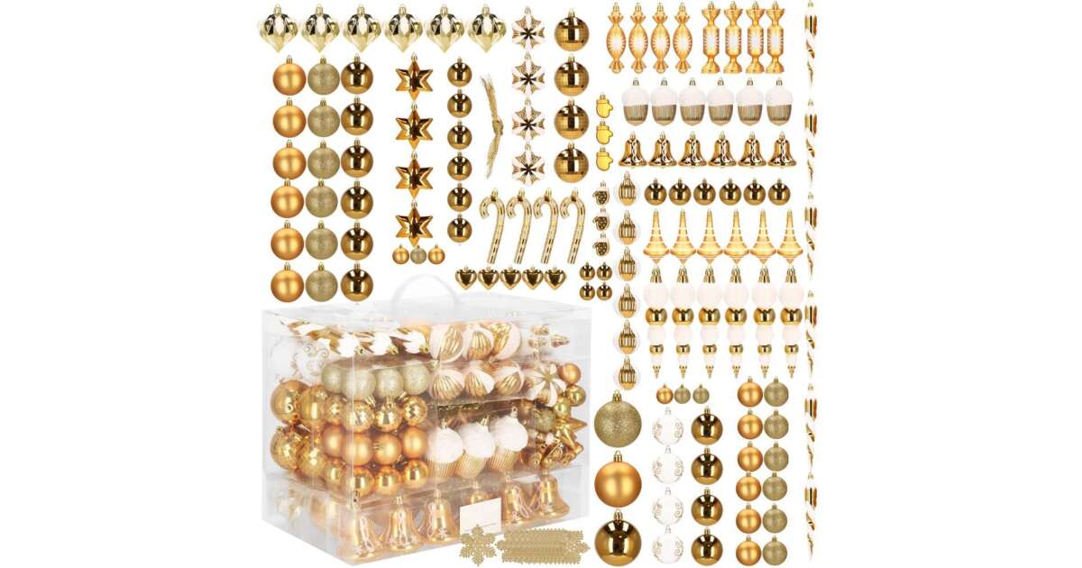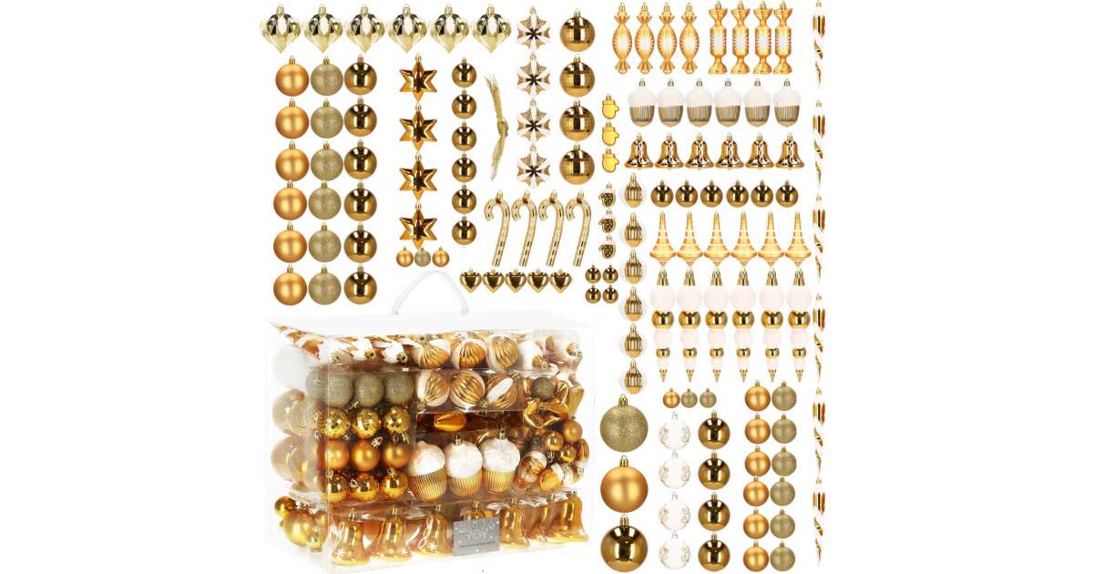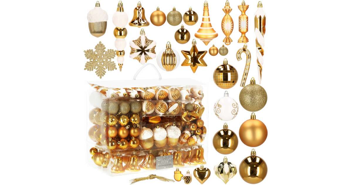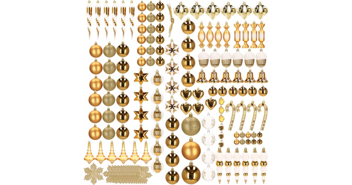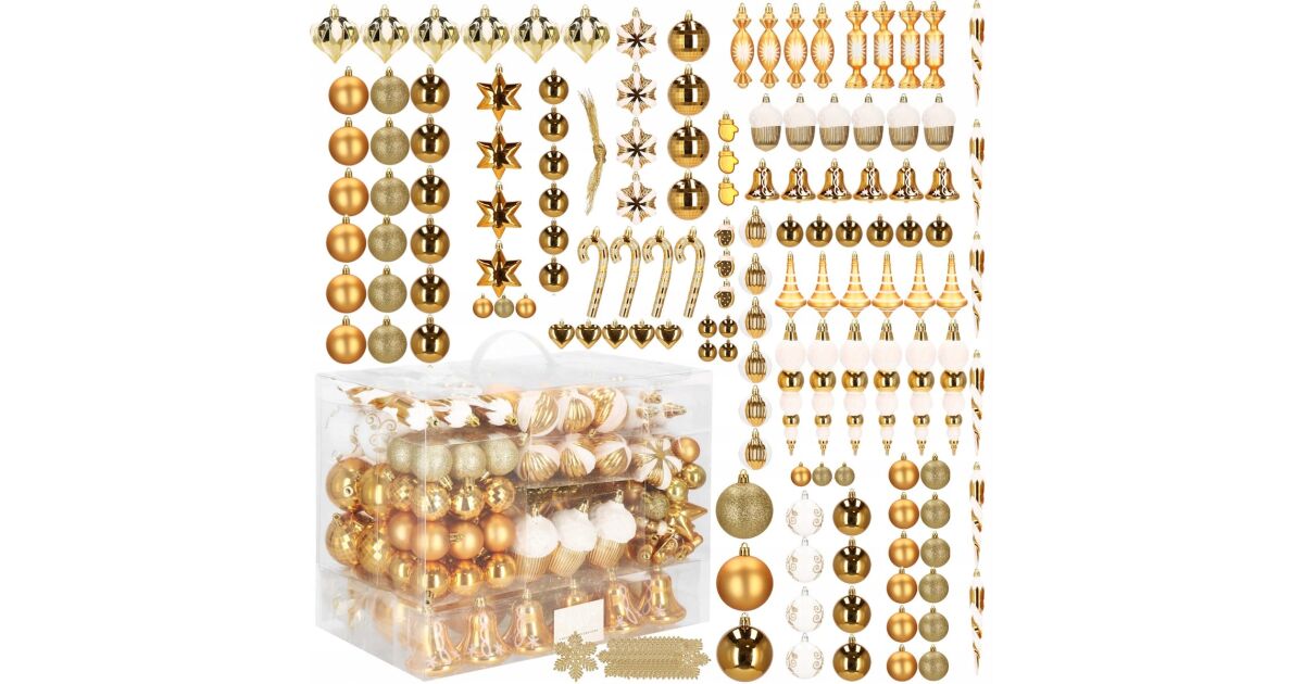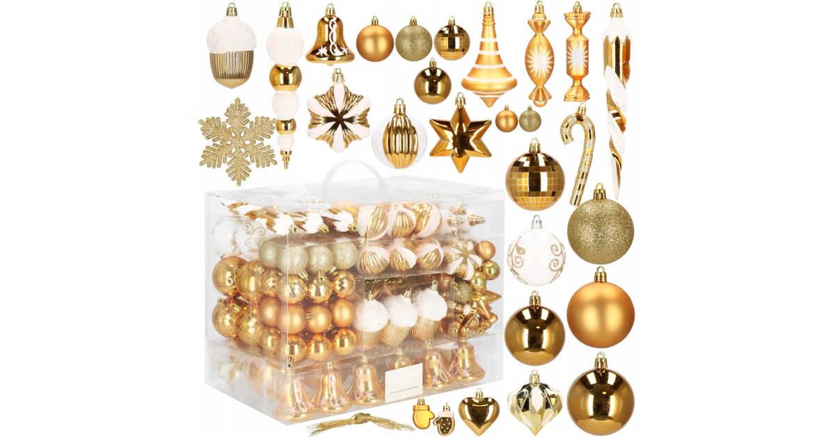 155 db-os Arany Karácsonyfadísz szett: Ünnepi fények a fájára ✨