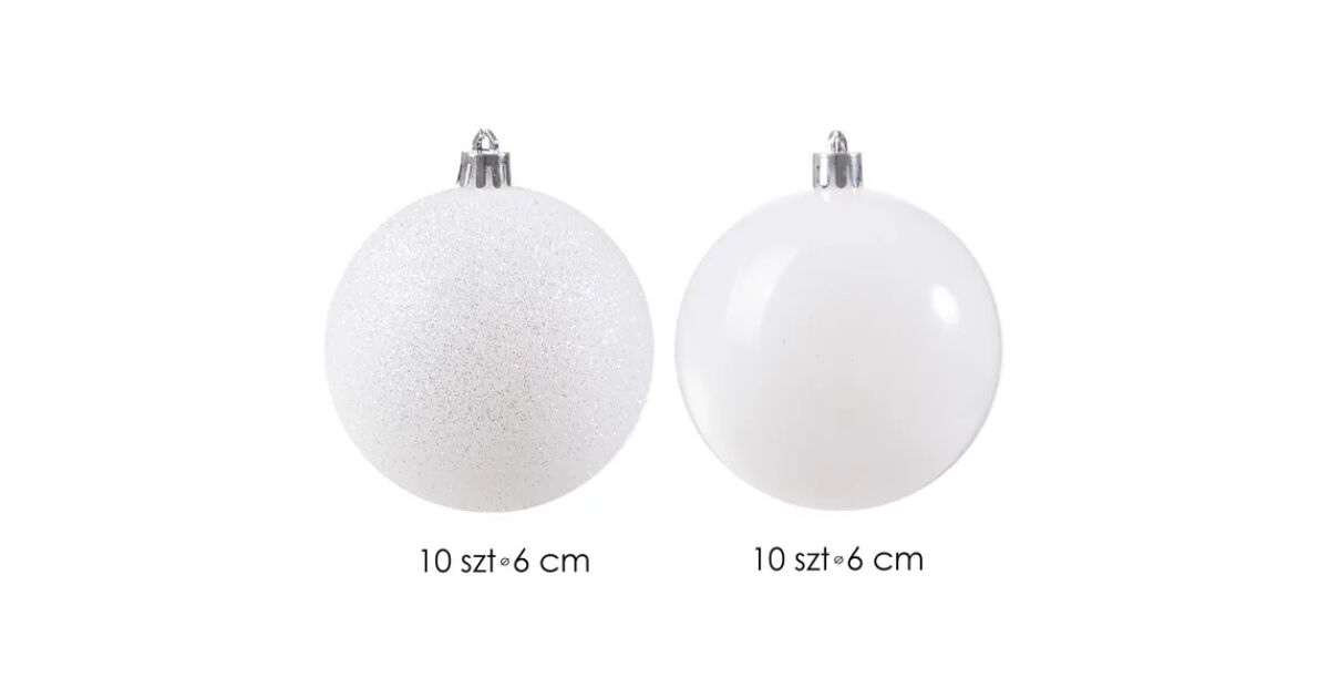 Ez a 20 darabos karácsonyfadísz szett tökéletes választás, ha elegáns és ünnepi hangulatot szeretnél teremteni a karácsonyfán. A szett 10 db fehér és 10 db fehér csillámos gömböt tartalmaz, így változatos megjelenést biztosít. A műanyagból készült díszek törhetetlenek, így biztonságosan használhatók akár kisgyermekes családokban is. A fehér szín tökéletesen kiemeli a karácsonyfa zöldjét, és könnyen kombinálható más karácsonyi díszekkel.