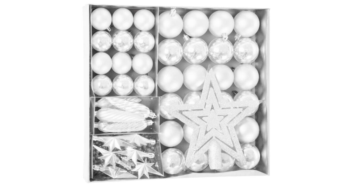 Varázsold el a karácsonyfádat ezzel a 50 darabos, fehér színű dísz szettel, amely minden szükséges elemet tartalmaz a tökéletes ünnepi dekorációhoz. A fehér szín letisztult és elegáns megjelenést kölcsönöz, így bármilyen stílusú otthonba illik.