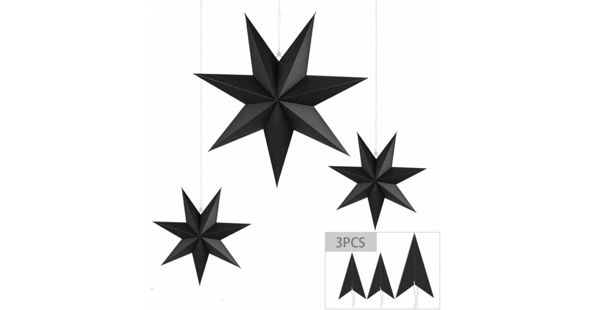 Változtasd otthonodat varázslatos ünnepi térré ezzel a 3 darabos papír dekorcsillag szettel! Az egyszerű, mégis kifinomult design és az elegáns fekete szín tökéletesen illeszkedik bármilyen dekorációba, akár a karácsonyfán, a falakon vagy az ablakokban használod.