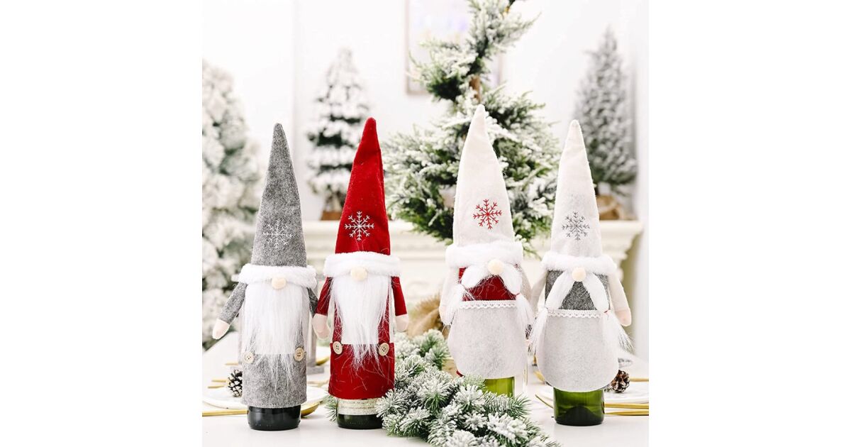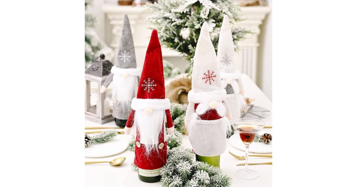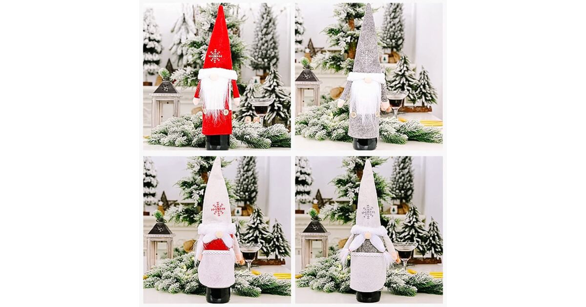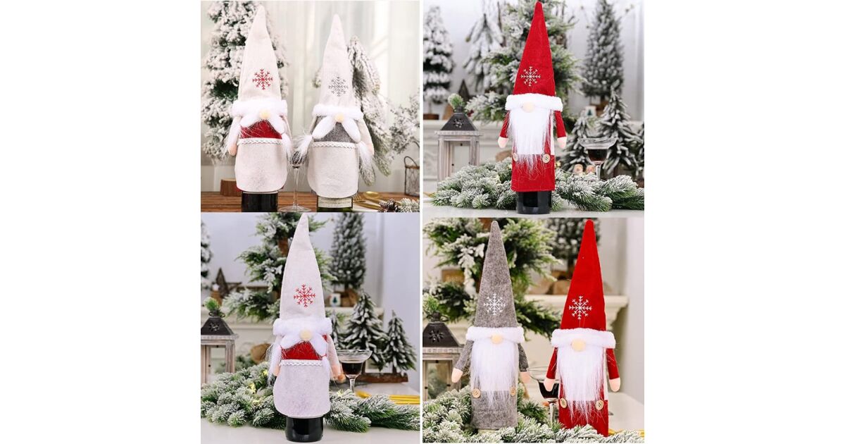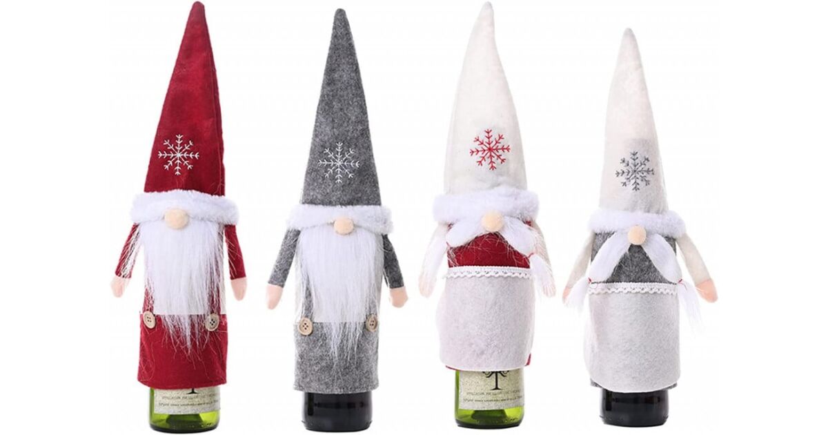 ANPTER 4 darabos karácsonyi borosüveg huzat szett – Aranyos törpék 🎅