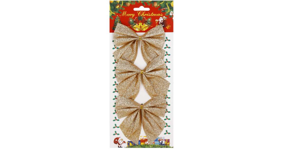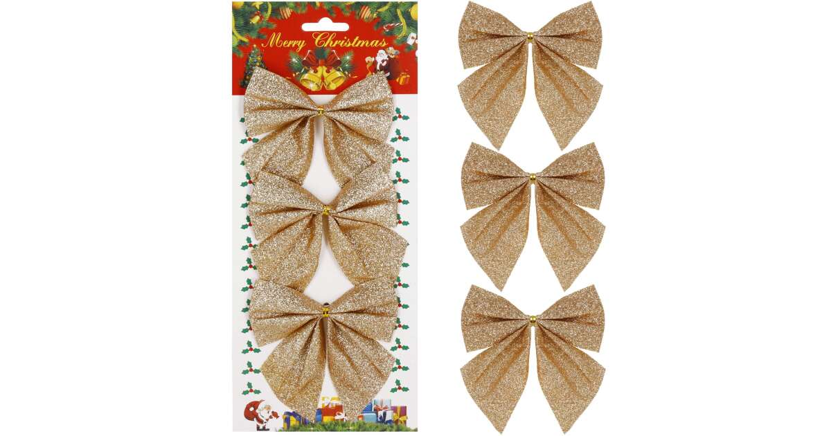 Arany csillogású karácsonyi masnik - 3 db, 11x11 cm