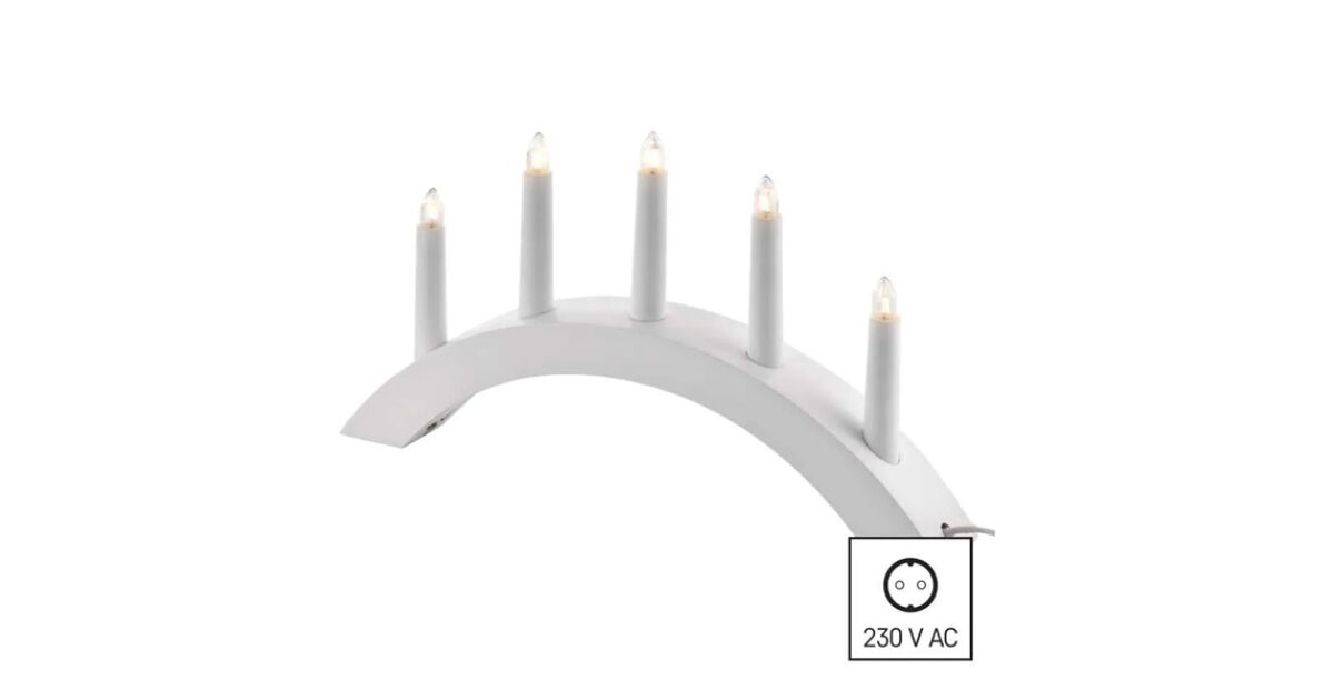 Ezt a terméket így is ismerheted: Emos DCAZ01 20x38 cm beltéri meleg fehér fa fehér ívelt gyertyatartó 5 db E10 izzóval