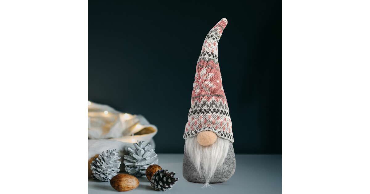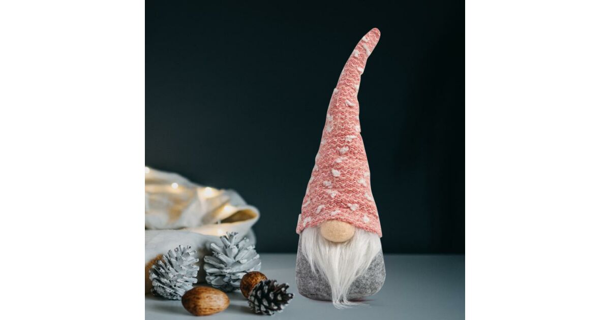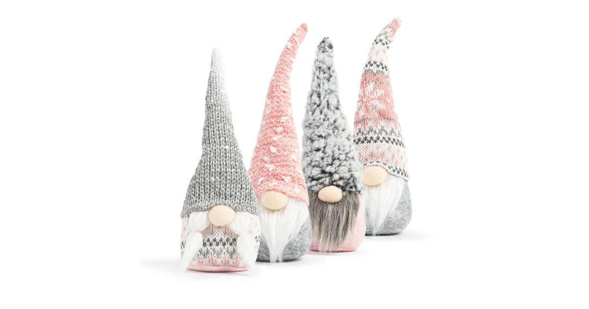 Karácsonyi Skandináv Manók: 1 db 22 cm-es textil manó, rózsaszín és szürke árnyalatokban 🎅