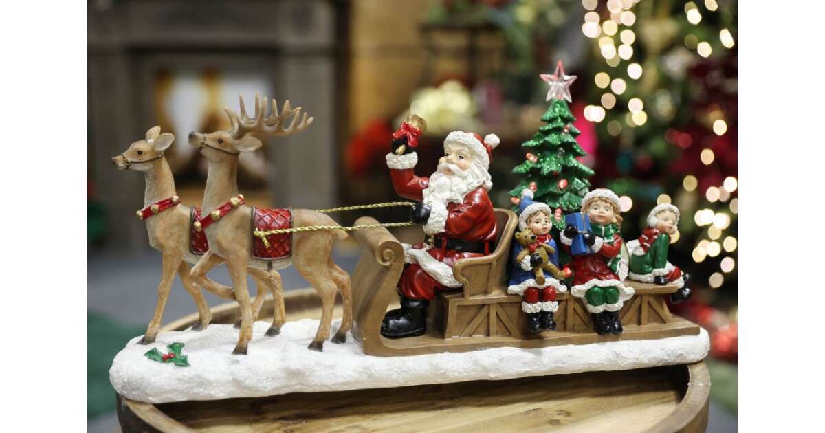 Ez a bájos karácsonyi dísz egy varázslatos Mikulást ábrázol, aki szánján ül, két rénszarvassal és három boldog gyermekkel. A szánon egy kis karácsonyfa is található, mely szintén LED világítással rendelkezik. A dísz LED lámpákkal van kivilágítva, melyek színváltoztató funkcióval rendelkeznek, hangulatos karácsonyi dallamot is játszik, hogy még ünnepibb hangulatot teremtsen otthonában.