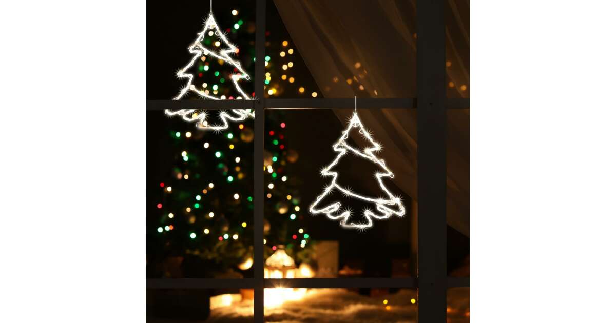 LED Fenyőfa Ablakdísz - Melegfehér Fényekkel ✨