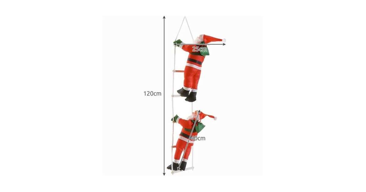 Vidám és egyedi karácsonyi dekoráció, amivel feldobhatod az ünnepi hangulatot! Két aranyos Mikulás mászik fel egy 110 cm hosszú kötéllétrán. A dísz mindenkit megmosolyogtat, aki meglátja.
