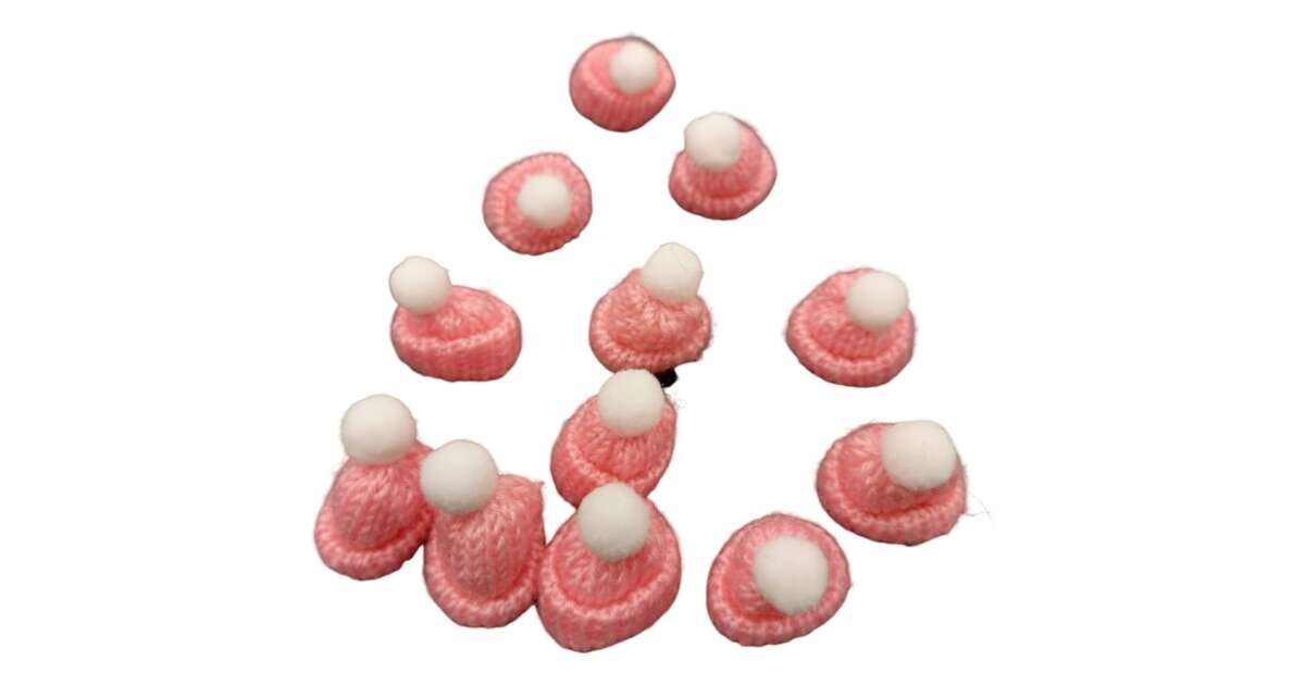 Ezek az aranyos, 4 cm-es rózsaszín mini kötött sapkák tökéletesek karácsonyi és téli dekorációk készítéséhez! Pomponnal díszítettek, és 4 darabot tartalmaznak a csomag.
