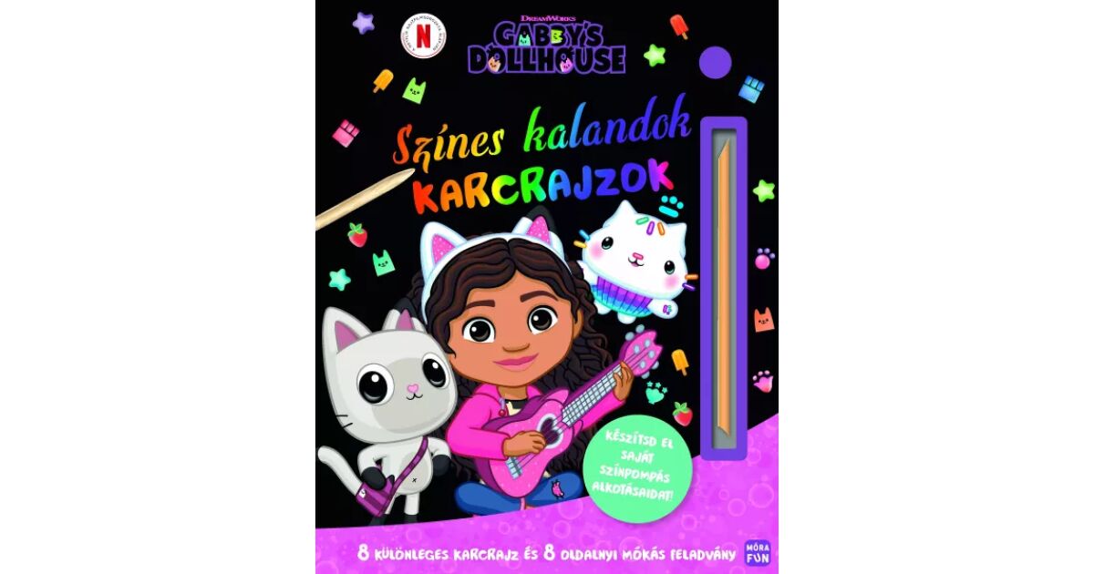 - 8 különleges karcrajz, melyeken Gabi és a babaház lakói elevenednek meg.