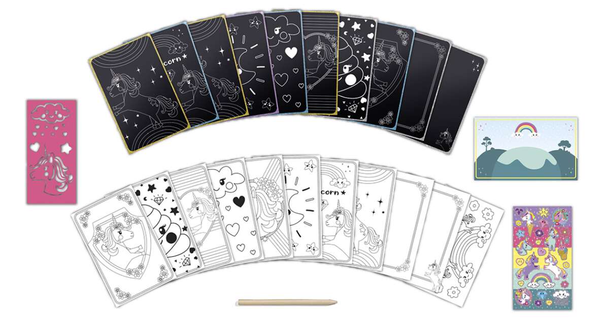 Ezt a terméket így is ismerheted: Totum Egyszarvús Kaparós Kifestő - 10 db Kaparólap, Matricák, Színezőlapok
