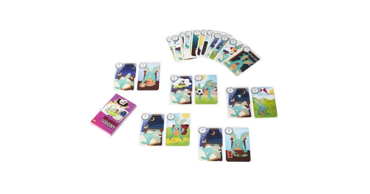 Ez a szórakoztató kártyajáték nagyszerű módja annak, hogy a gyerekek játékosan tanulják meg az idő fogalmát és fejlesszék a logikai gondolkodásukat. A 25 színes kártyán különböző tevékenységek láthatók, melyek különböző napszakokban zajlanak, de az órákon ugyanaz az idő látható.
