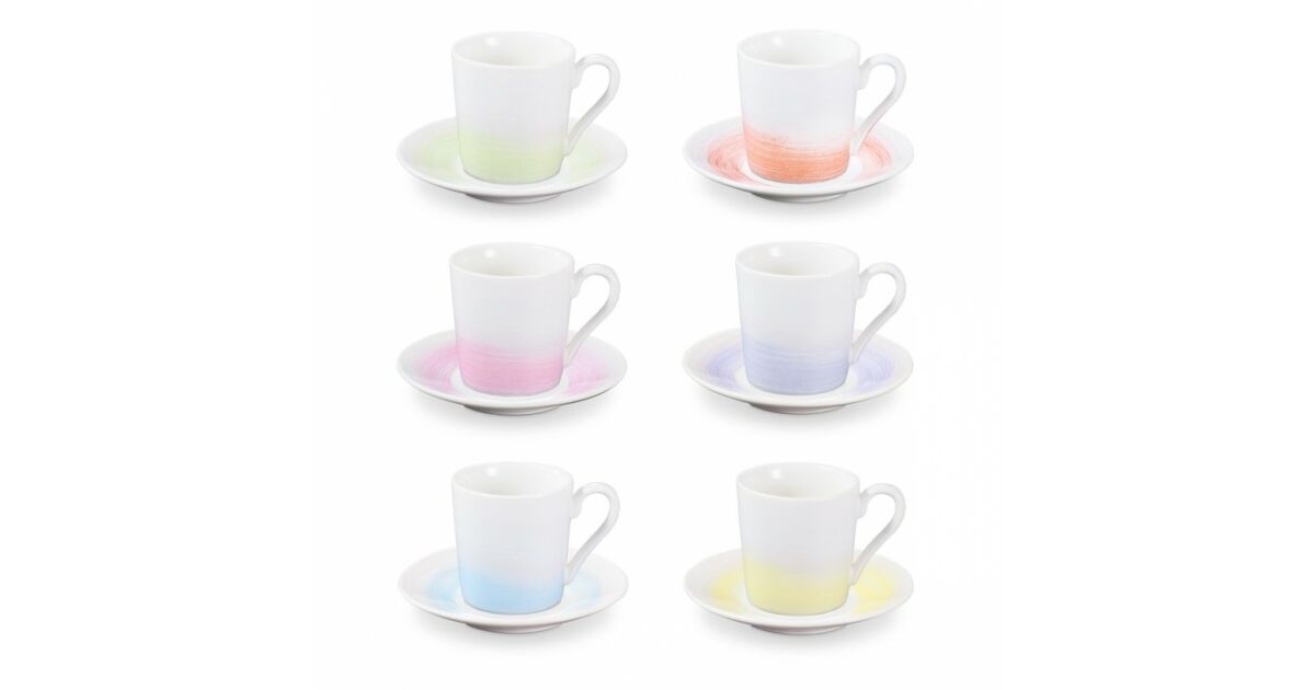 Élvezze kávéját stílusosan ezzel a 6 darabos, pasztell színű eszpresszó csésze és csészealj szettel! A csészék kiváló minőségű, vékonyfalú "New Bone" porcelánból készültek, ami kivételes fehérséget és tartósságot biztosít. A hagyományos forma találkozik a modern, trendi pasztell színekkel, így egy igazán egyedi élményt nyújt.