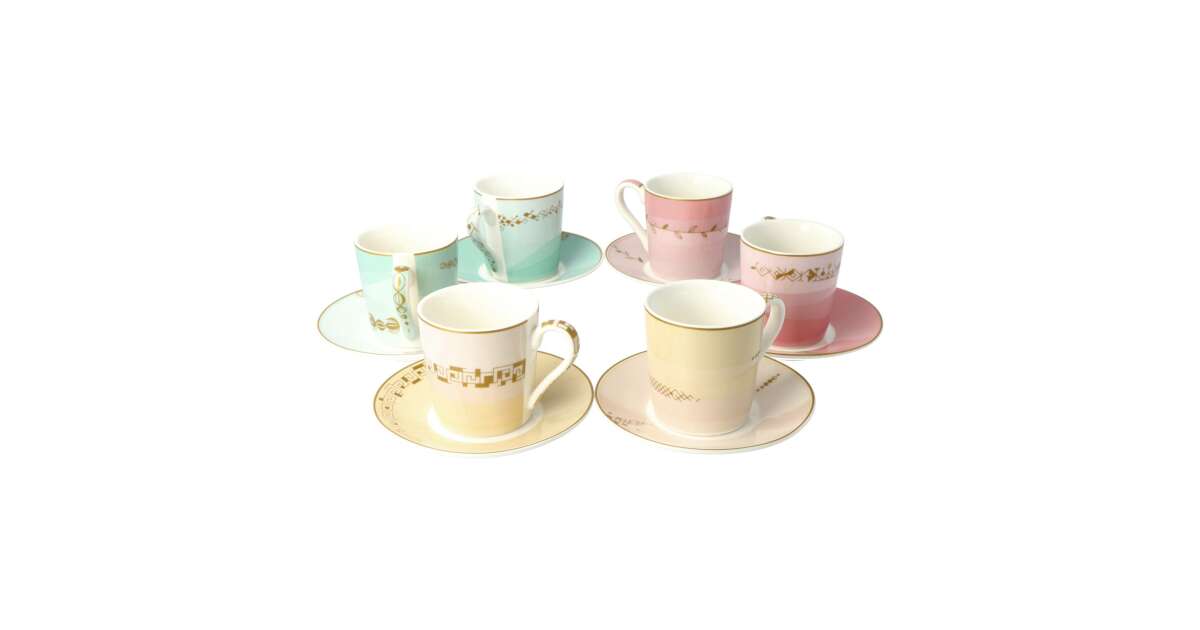 Élvezze kávéját stílusosan ezzel a 6 darabos myCOFFEE Romance eszpresszó csésze és csészealj szettel! A csészék és csészealjak kiváló minőségű, vékonyfalú "New Bone" porcelánból készültek, mely kivételes fehérséget és tartósságot biztosít. A hagyományos formavilág 6 egyedi, trendi dekorációval párosul, hogy otthona elegáns dísze legyen.
