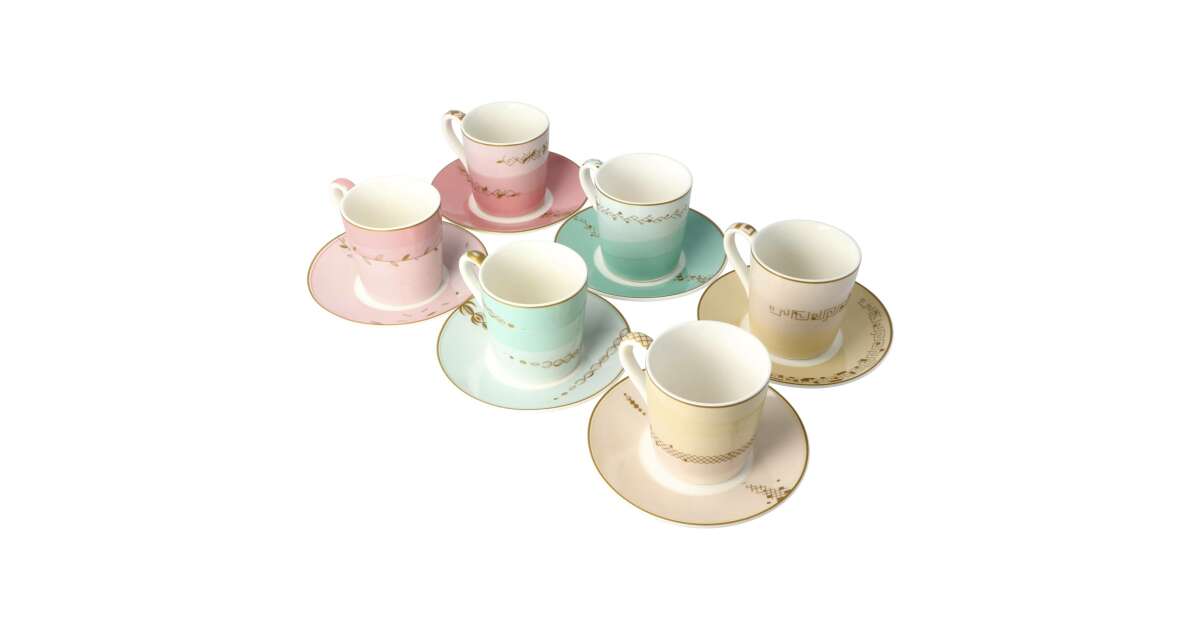 - ☕ 6 db eszpresszó csésze és csészealj egy elegáns szettben