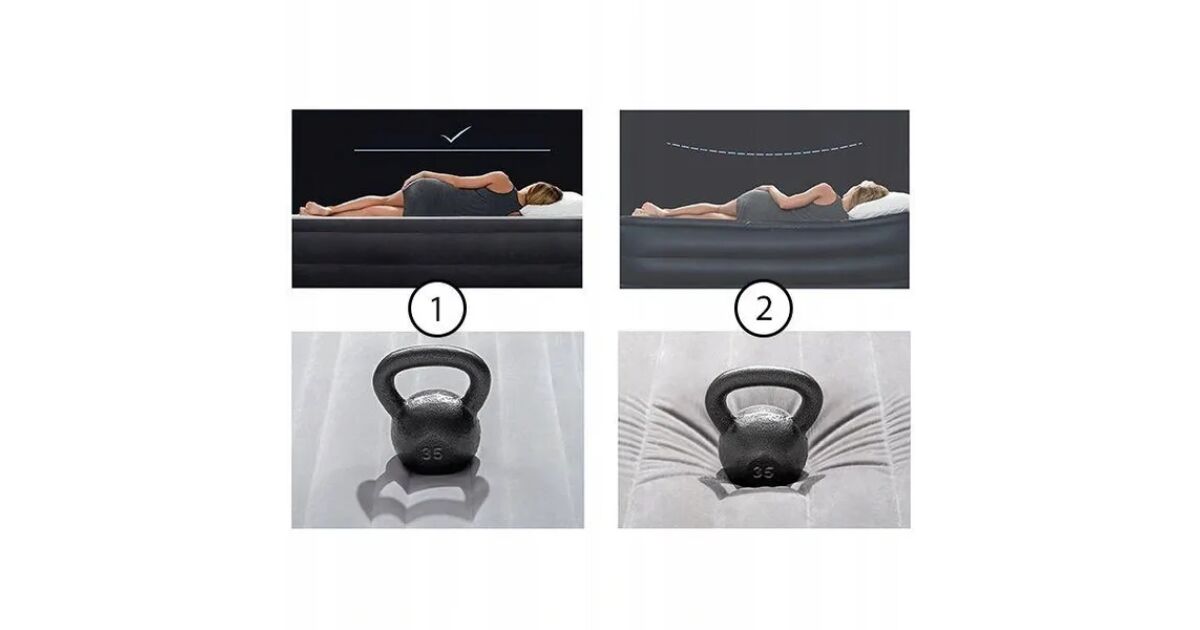 - Minőségi, strapabíró anyag: A kétrétegű kialakítás és a Fiber-Tech technológia tartós és kényelmes alvást biztosít. A matrac akár 136 kg-os terhelést is elbír (a képeken látható terhelhetőségi teszt alapján).
