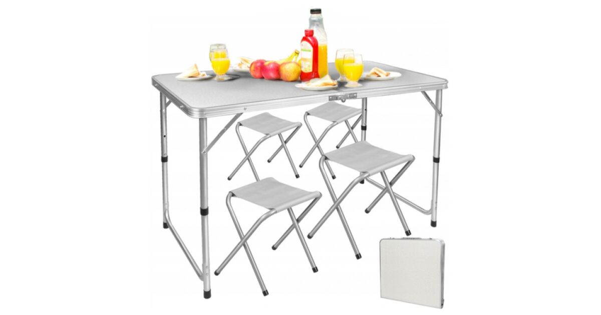 Ezt a terméket így is ismerheted: Hordozható összecsukható kempingszett, 4 személyes (kempingasztal + 4 szék), HT