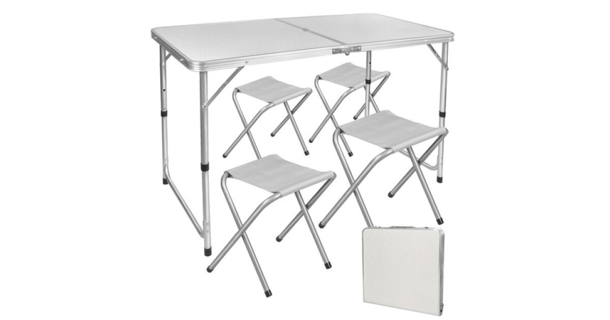 Hordozható összecsukható kempingszett, 4 személyes (kempingasztal + 4 szék), HT vélemények